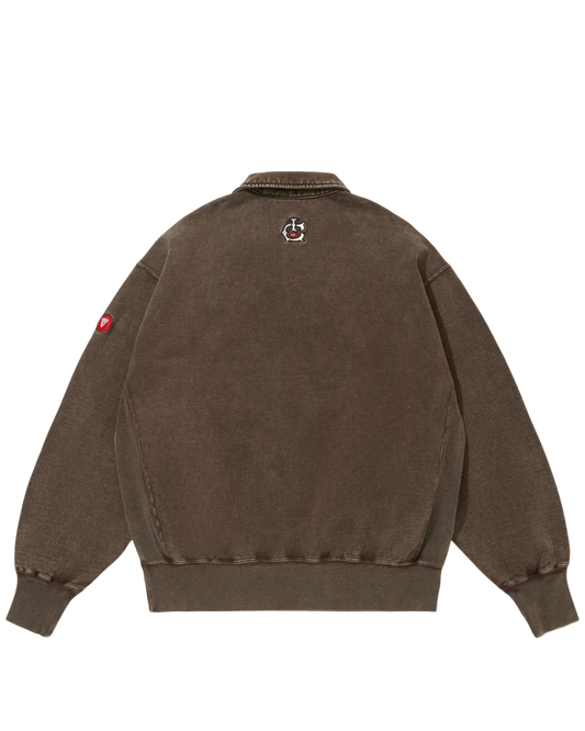 Emboridered Logo Damaged Half Zip Sweatshirt