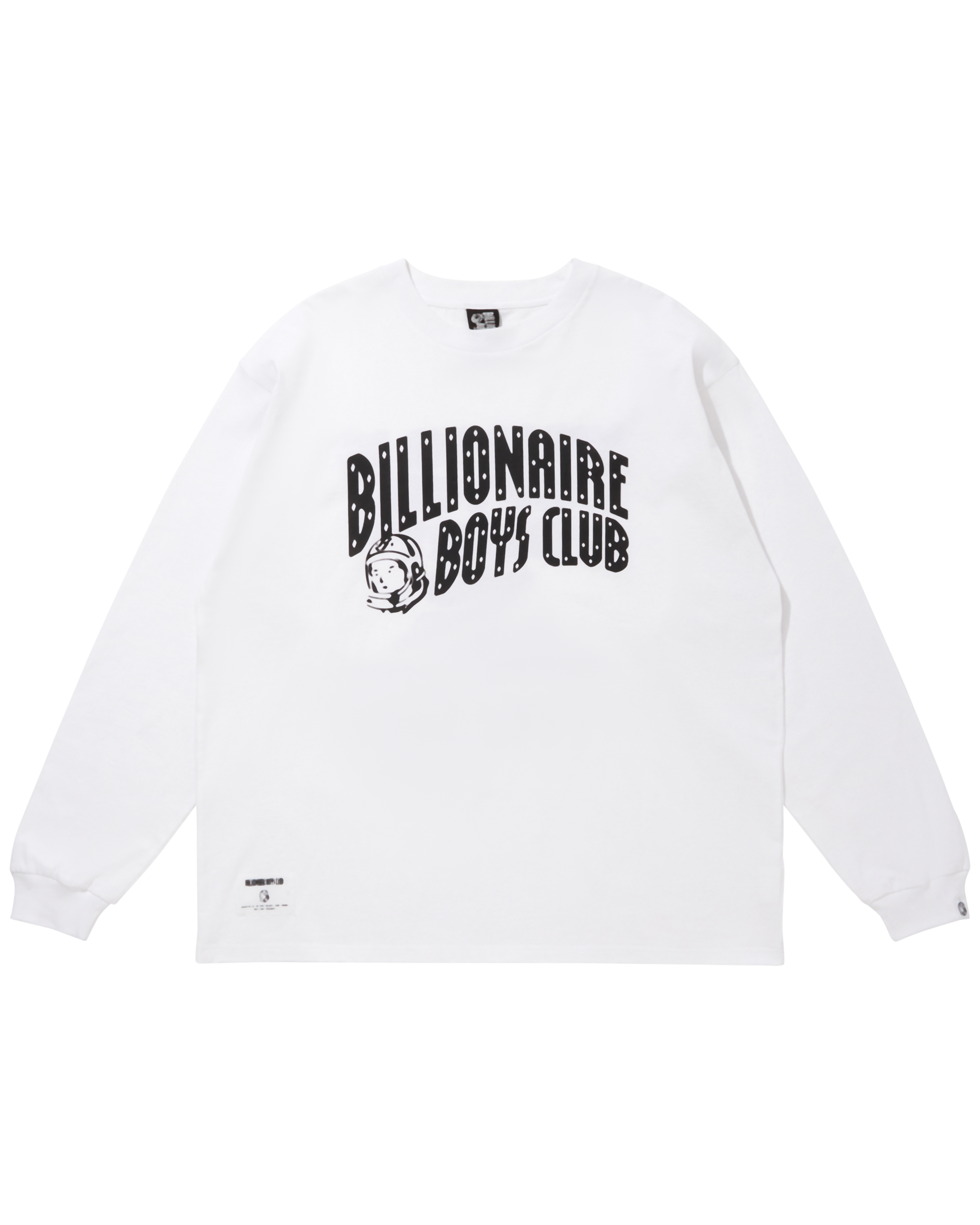 Long sleeve tee with Billionaire Boys Club's signature arch logo and helmet graphic on the front and the mantra on the back.