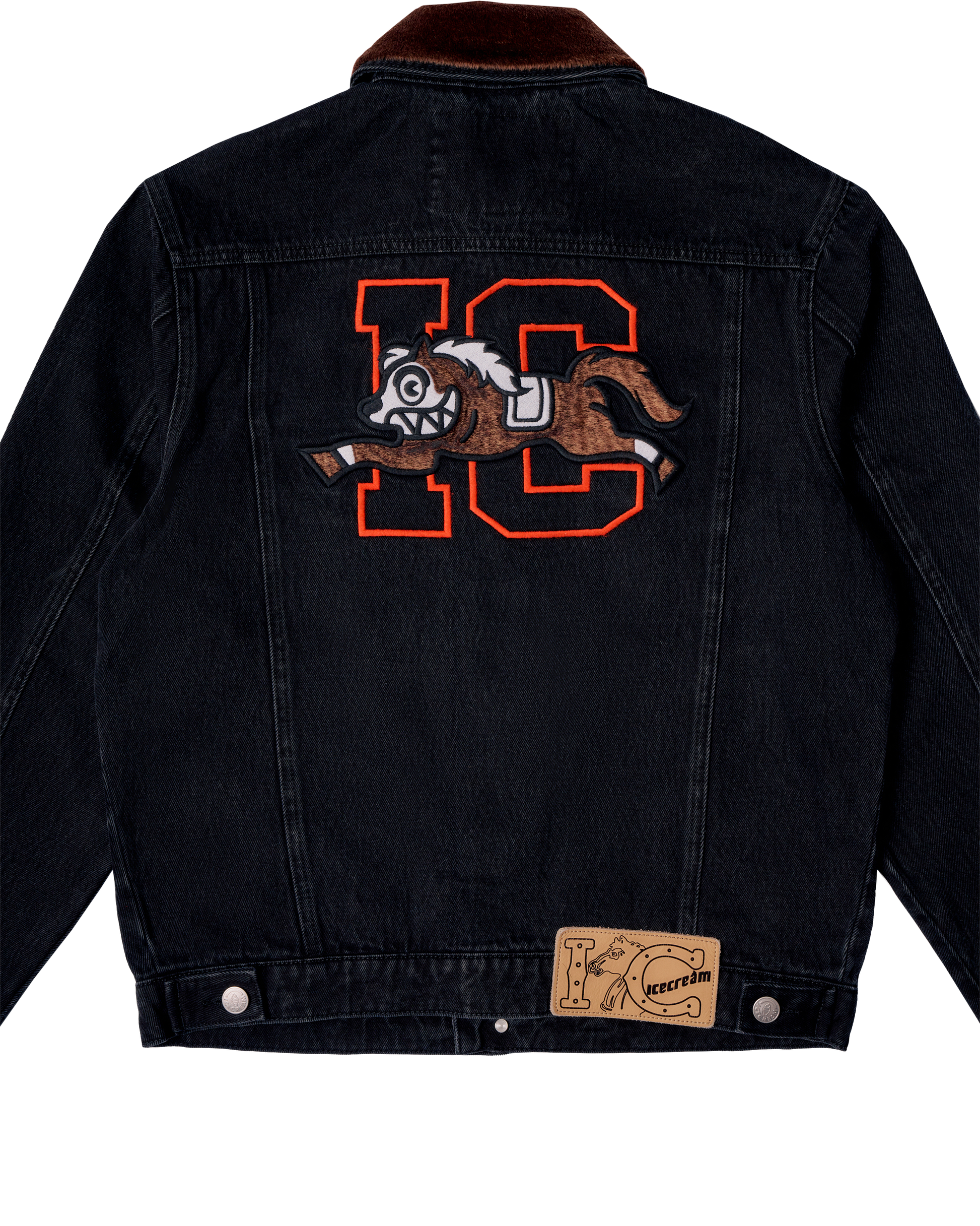 The Stablehand Denim Jacket is a statement piece from the BBC Icecream Chinese New Year Collection. This jacket features a removable faux fur collar and Icecream embroidery on the front and back.