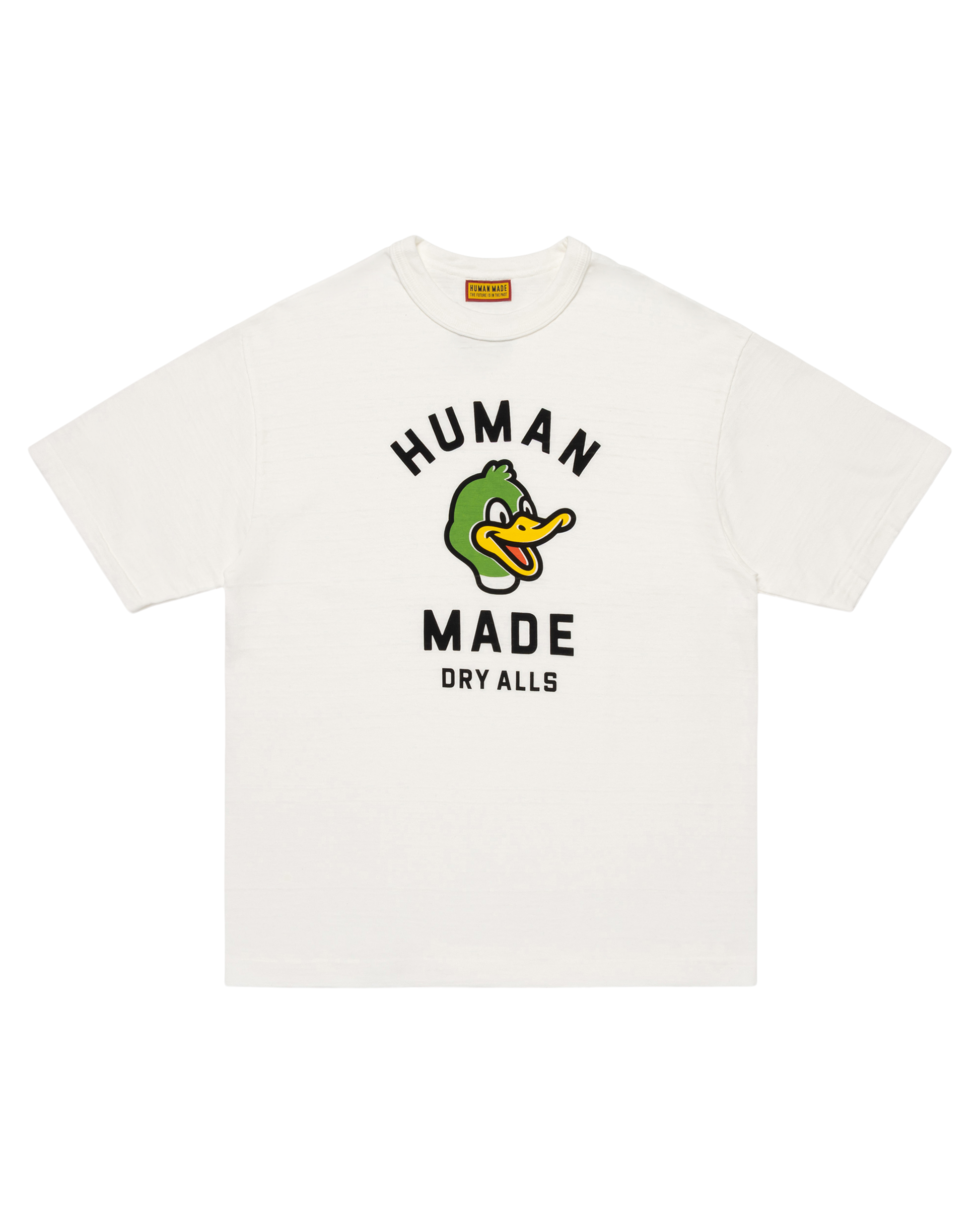 Human Made’s standard slub yarn T-shirt featuring a Duck graphic on the front and Single heart logo on the back.