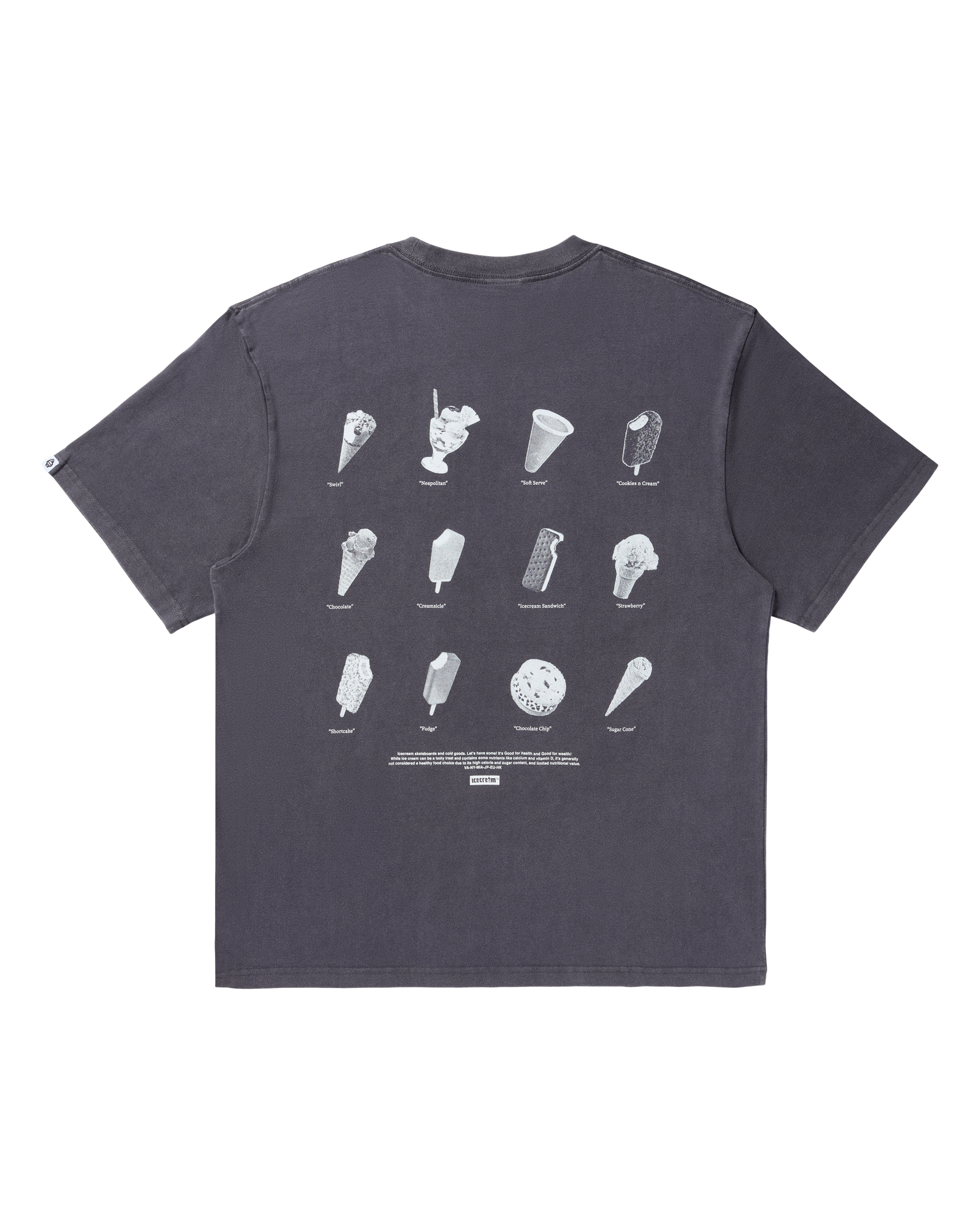 The Options Tee features the Icecream logo printed on the front left chest with a detailed back graphic inspired by classic ice-cream shop favorites.