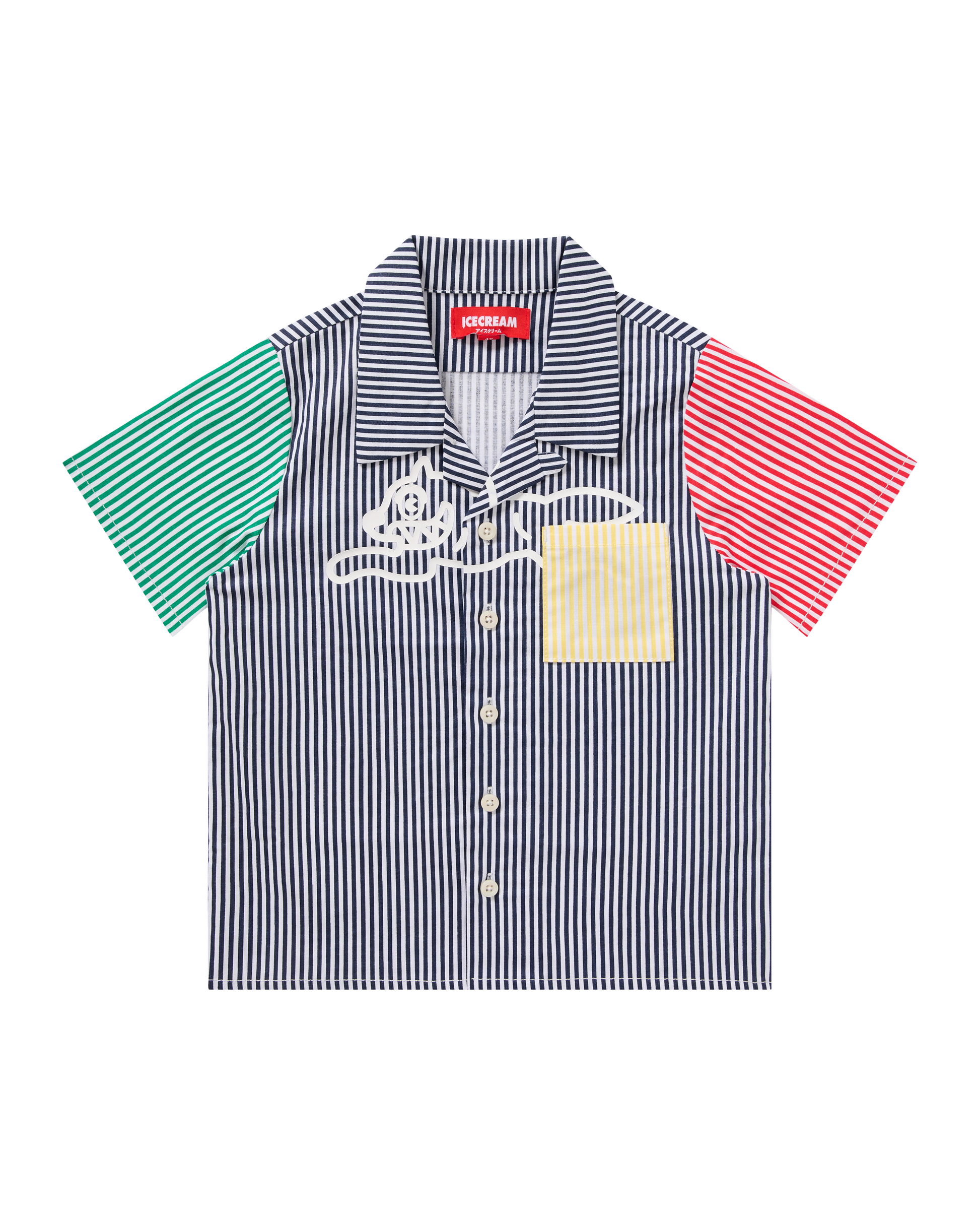 The Same LS Woven features color block stripes and the Running Dog logo printed on the front.