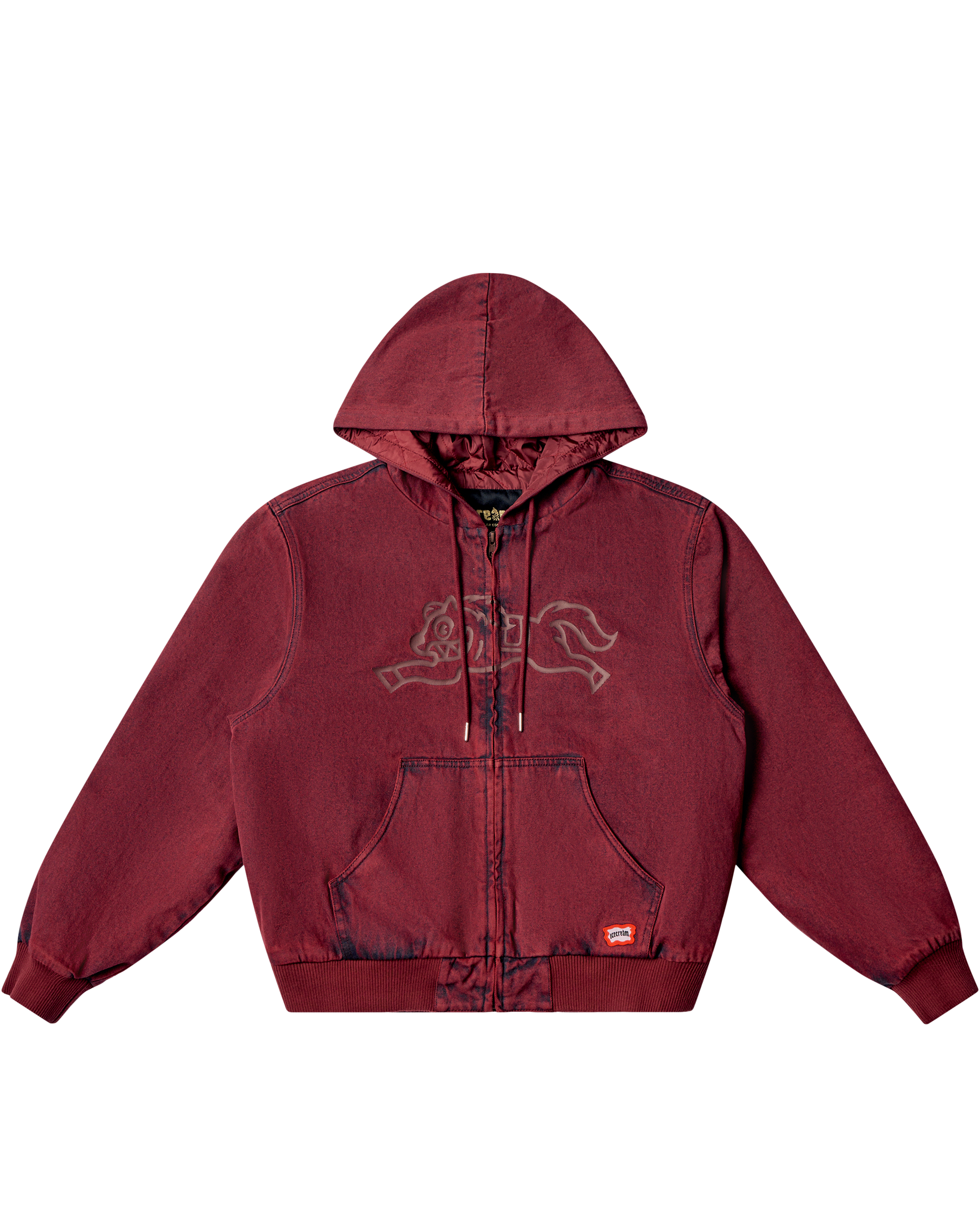 The Equine Washed Zip Hoodie is a workwear-inspired piece. This hoodie features a Zip closure and a Chinese New Year-inspired Running Dog graphic on the chest.
