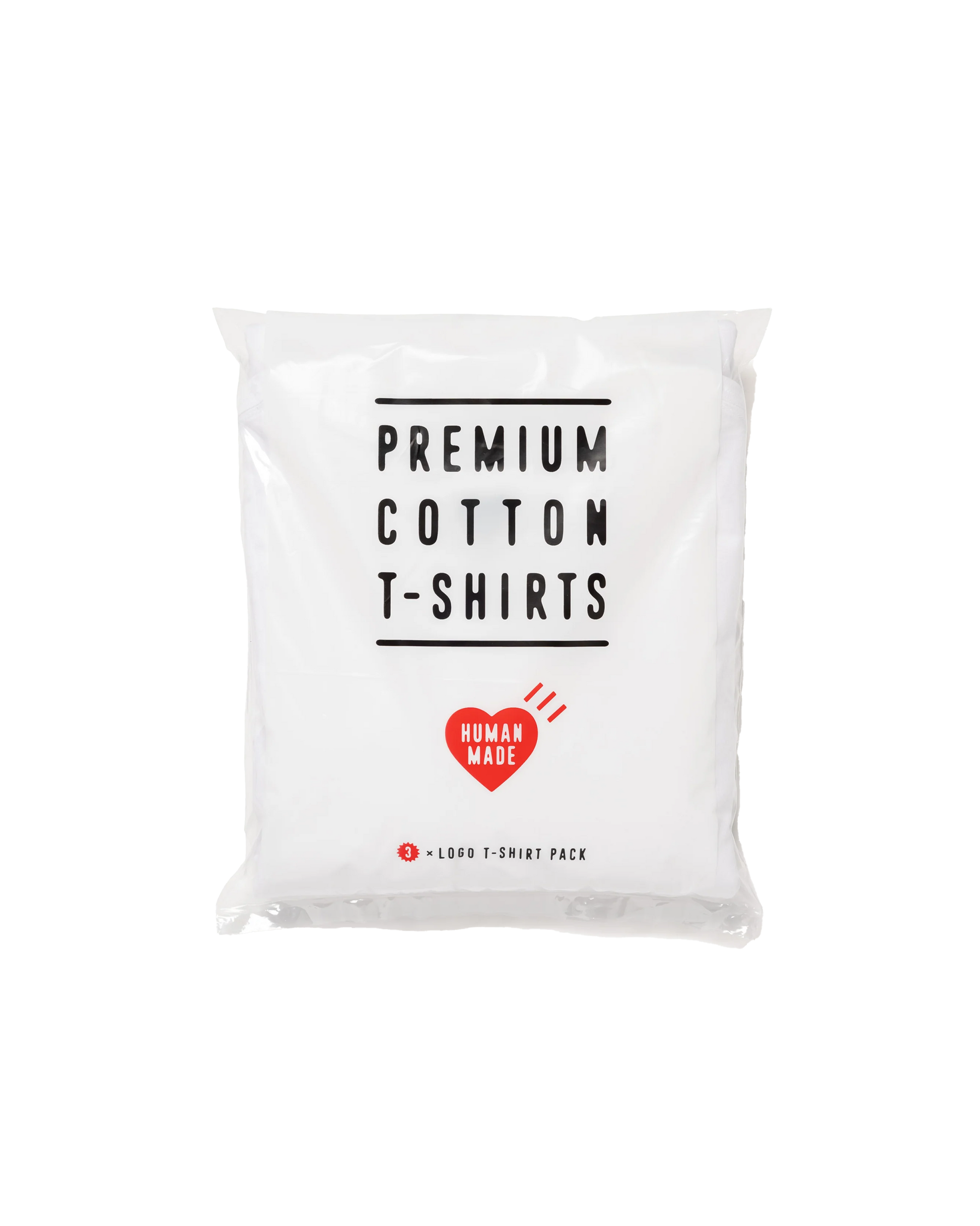 This 3-pack T-shirt set features three shirts, each featuring a unique heart logo in different colors printed on the left hem.