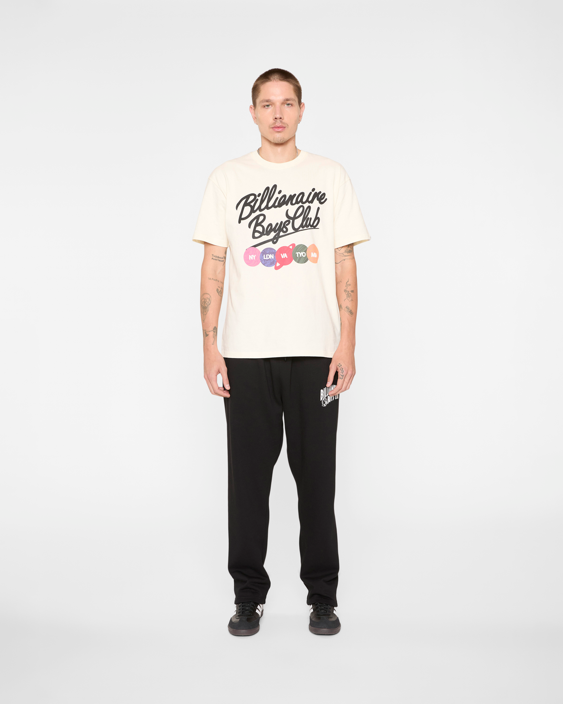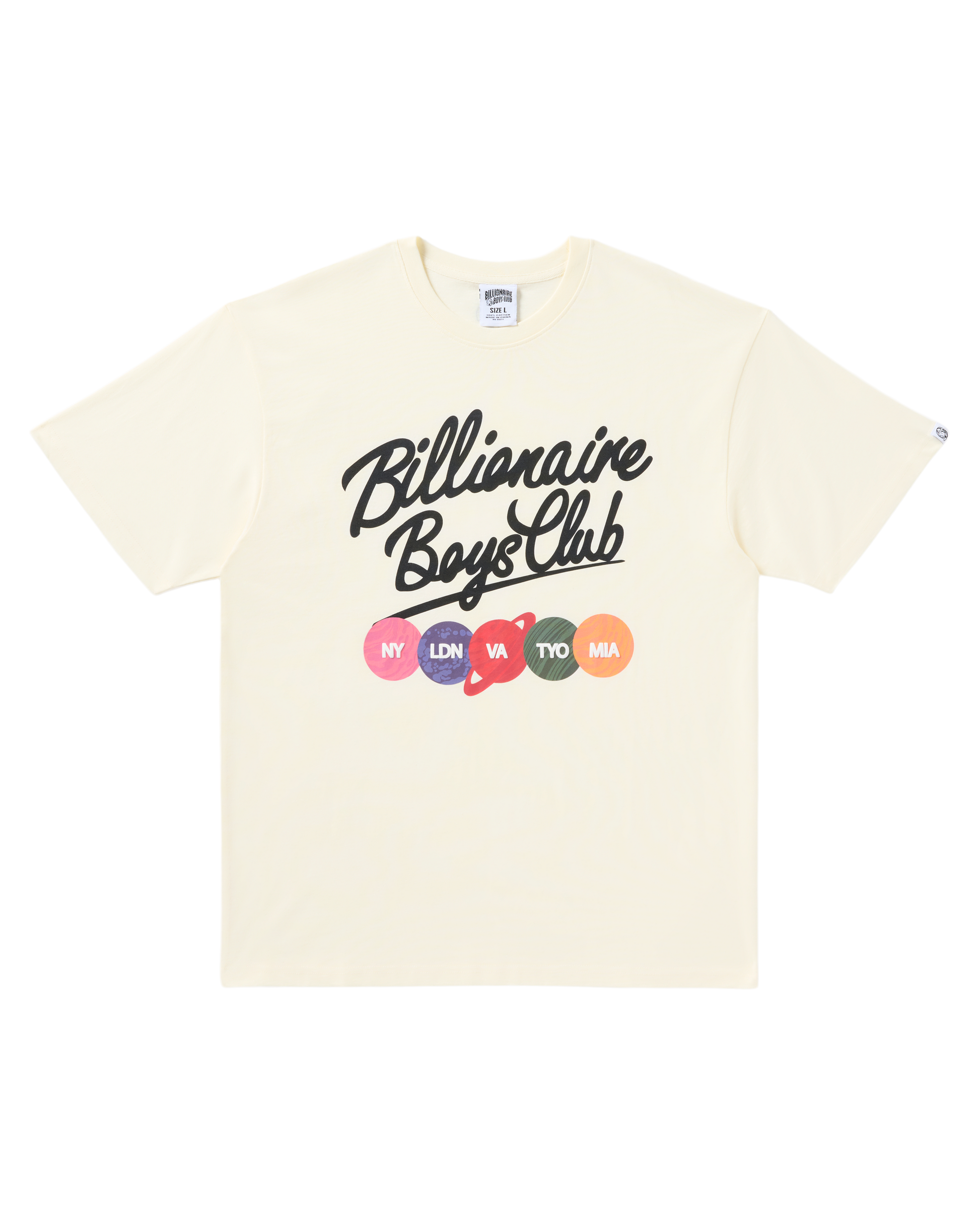The Align Tee features the Script logo paired with planet graphics labeled with city acronyms on the front chest, and the Standing Astronaut printed on the back.