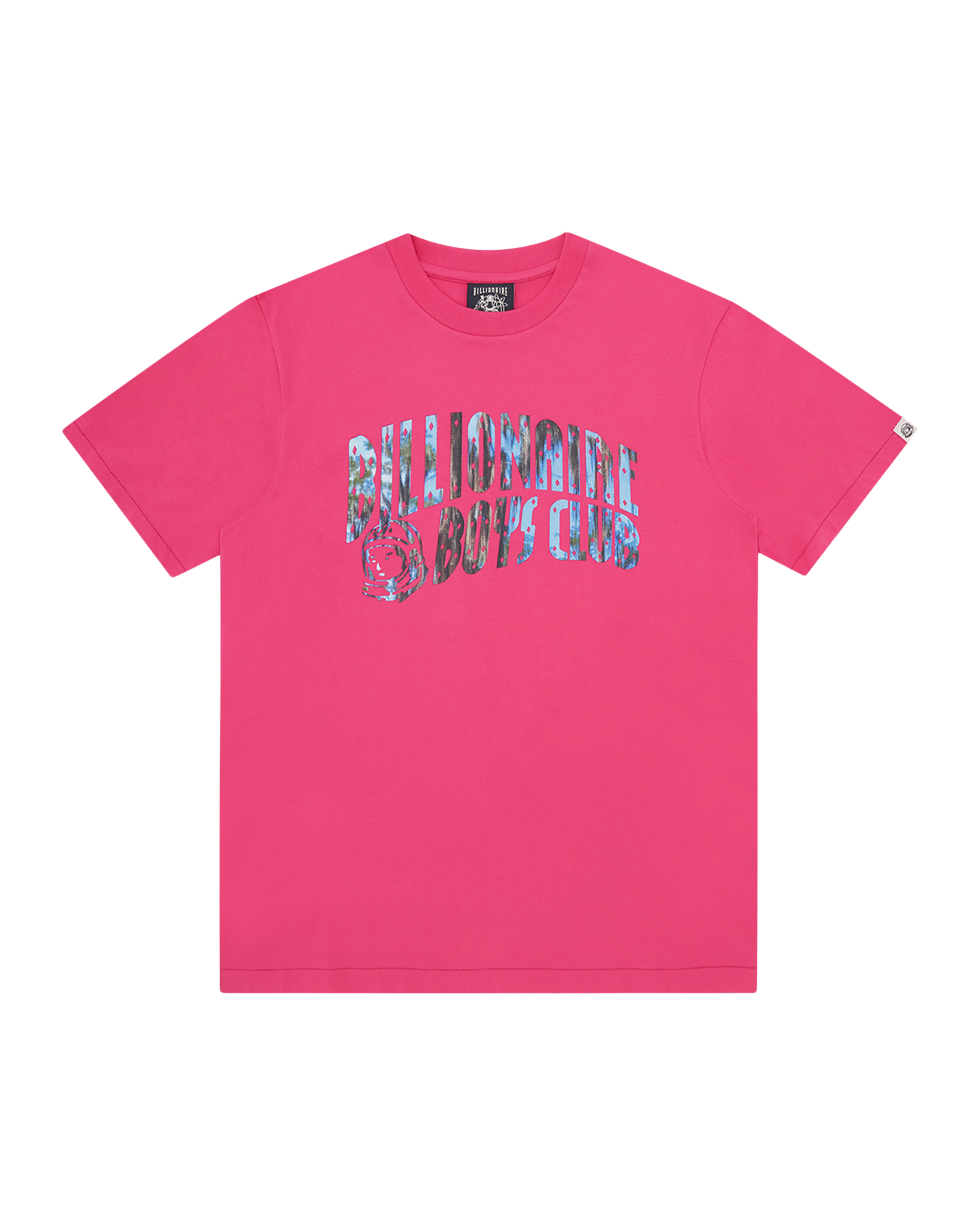 This Bayou Fill Arch Logo T-shirt features the iconic Billionaire Boys Club arch logo with a multicolour, nature-inspired pattern at front and the standing astronaut at back neck.