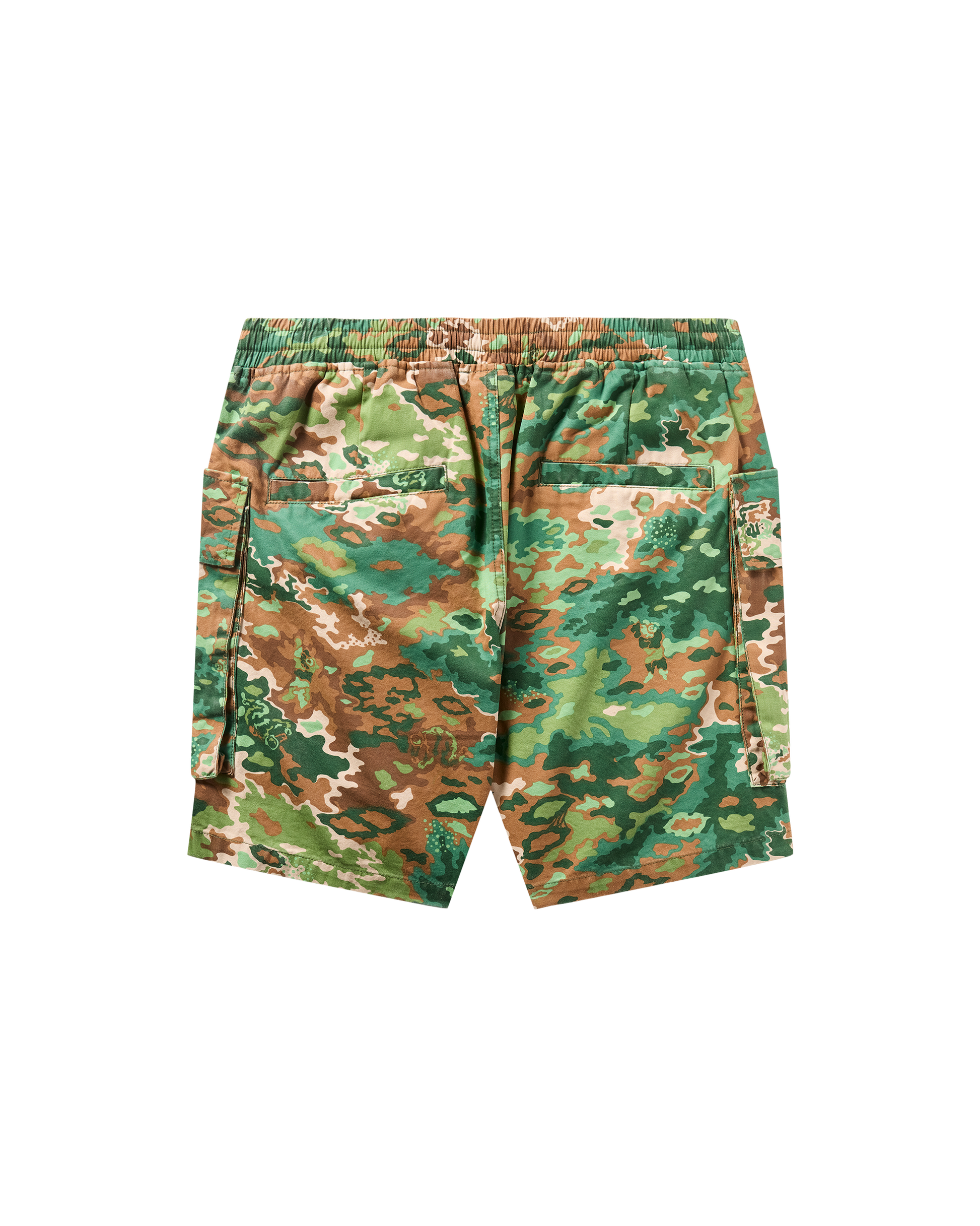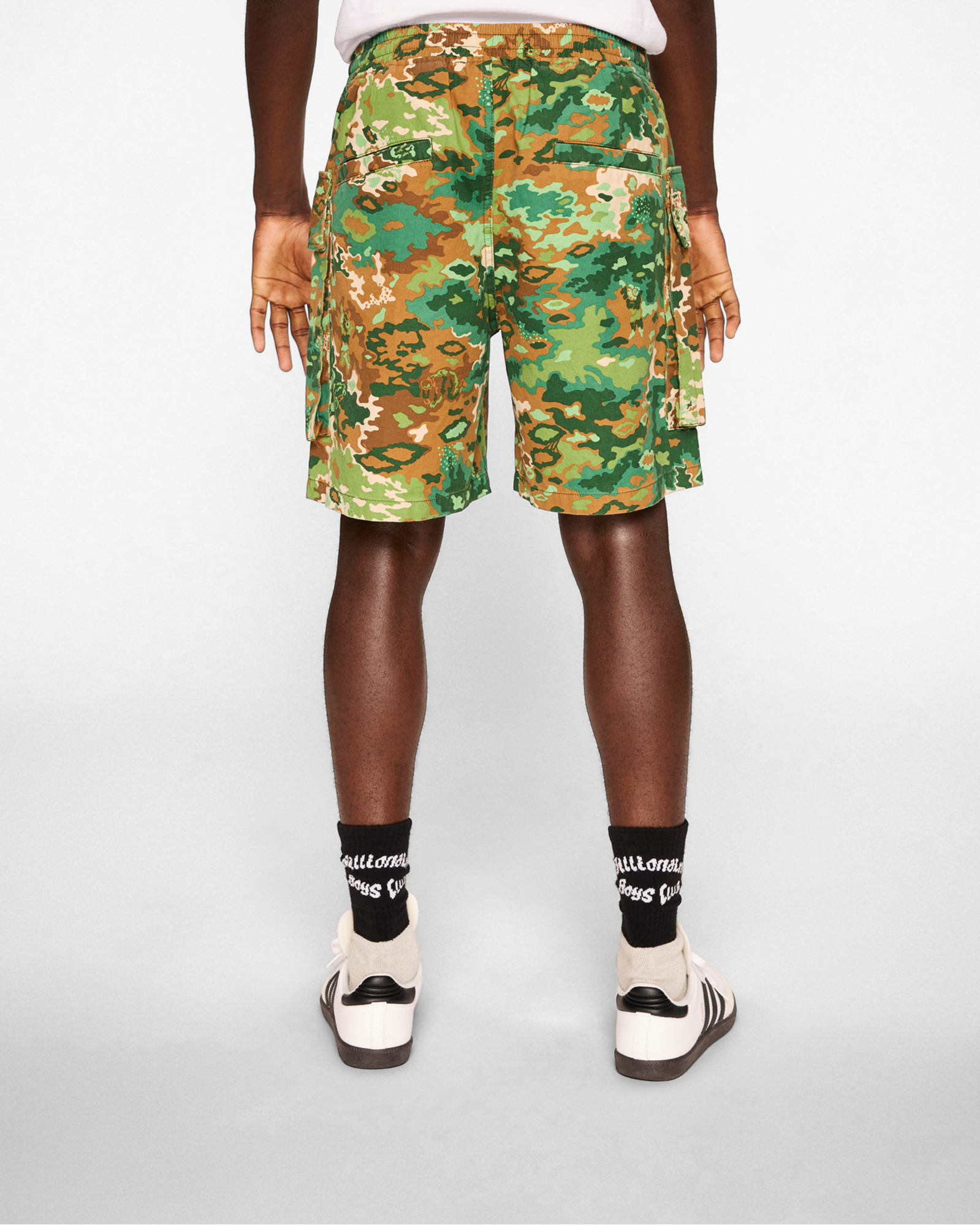 These shorts come with an adjustable waistband and showcase an all-over camouflage print.