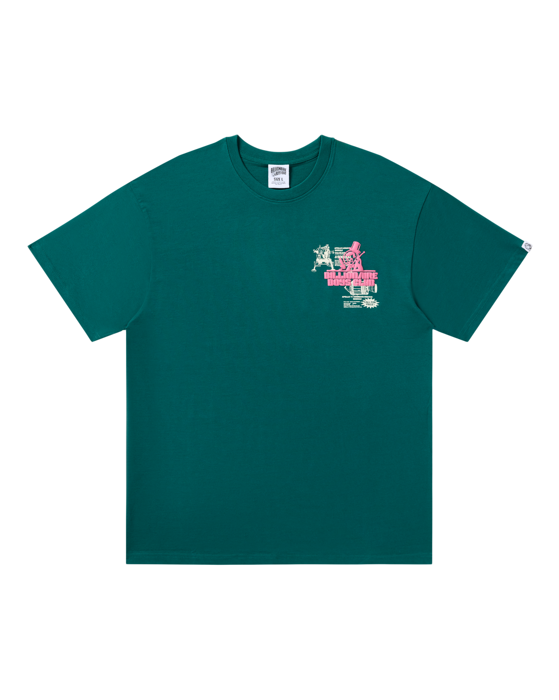 The Cash Or Trade SS Tee features a Billionaire Boys Club graphic at the front left chest and a retro-inspired collage print on the back with vibrant pink “CALL NOW” lettering and city callouts — New York, London, Tokyo, Miami.
