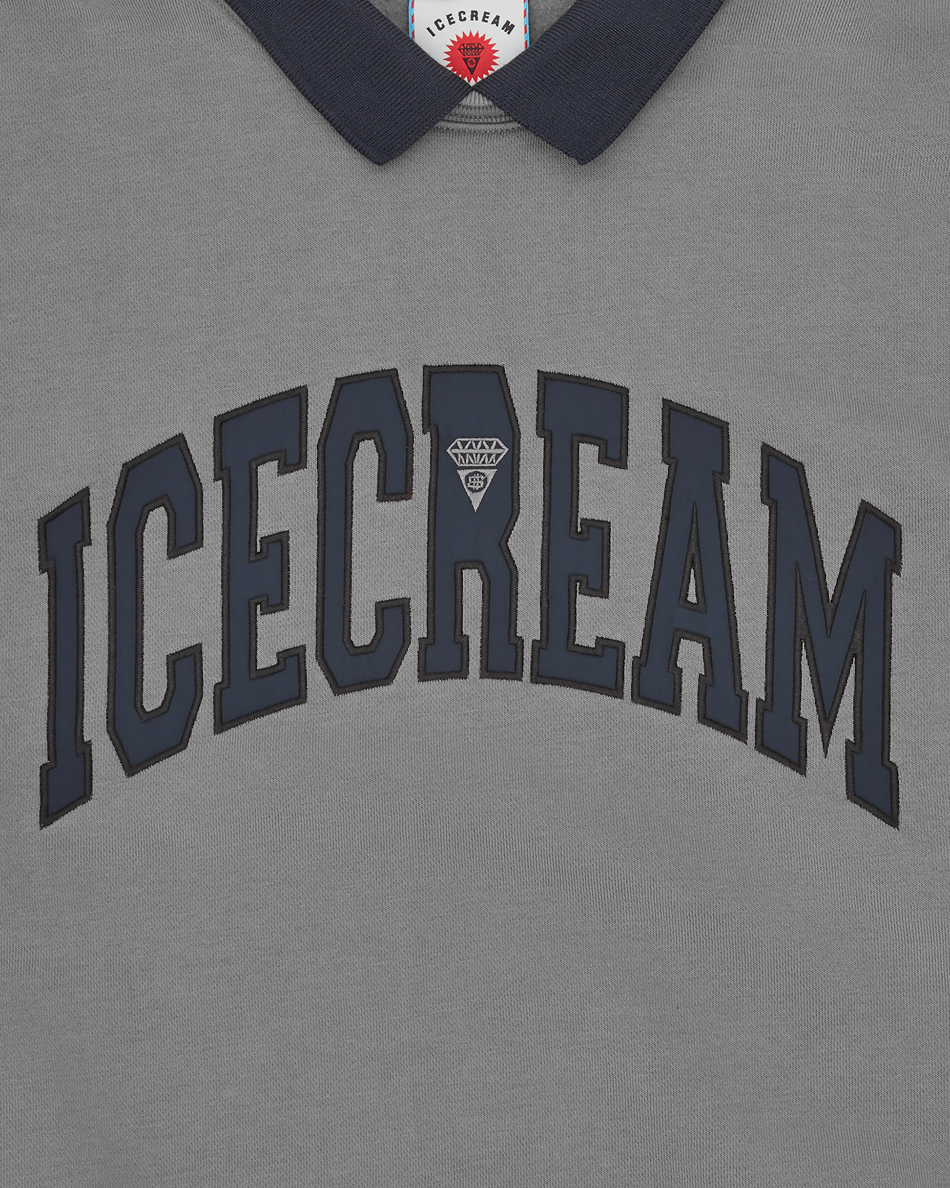 This Collared Warm-Up Sweatshirt presents a collar and the ICECREAM twill appliqué on the chest.