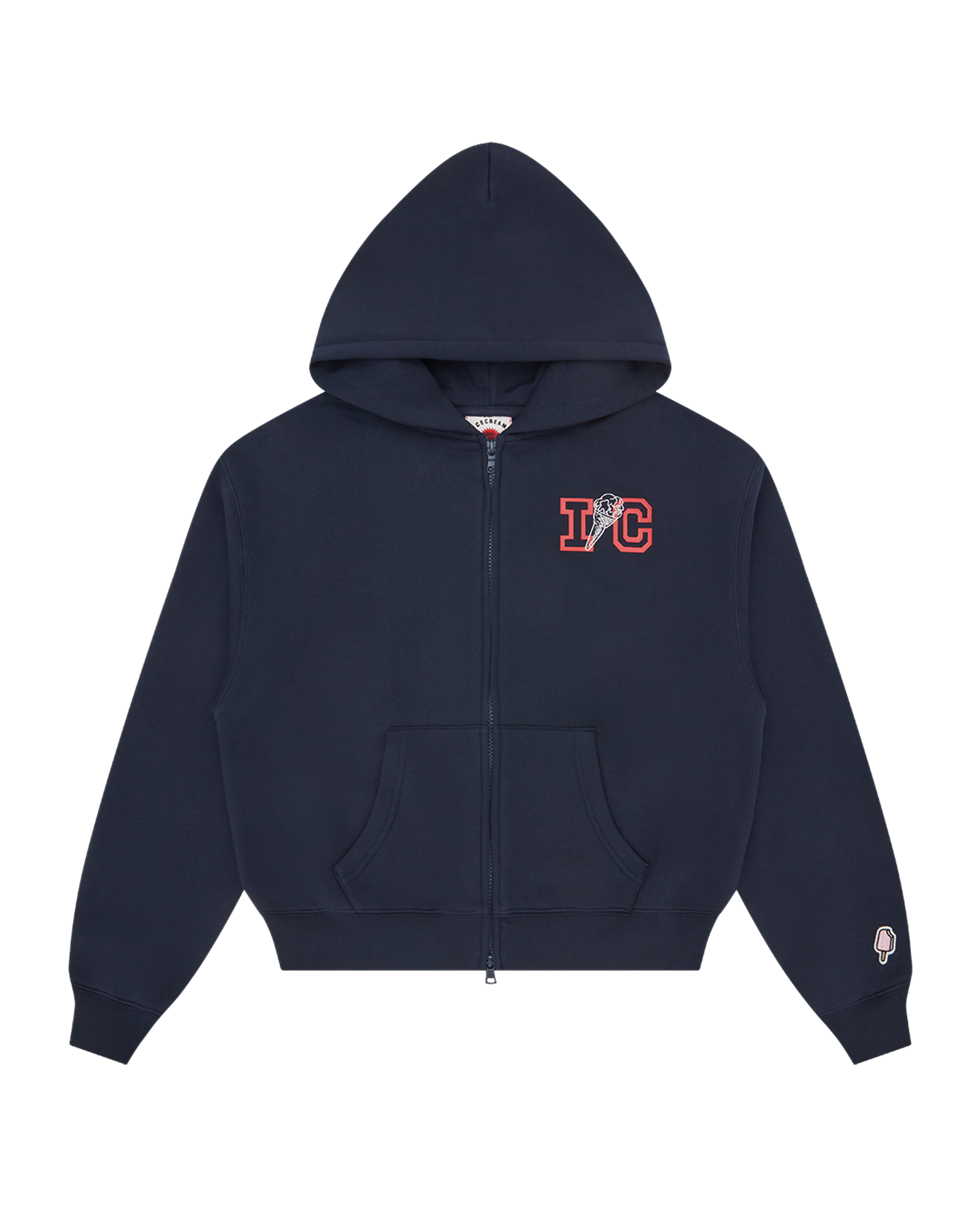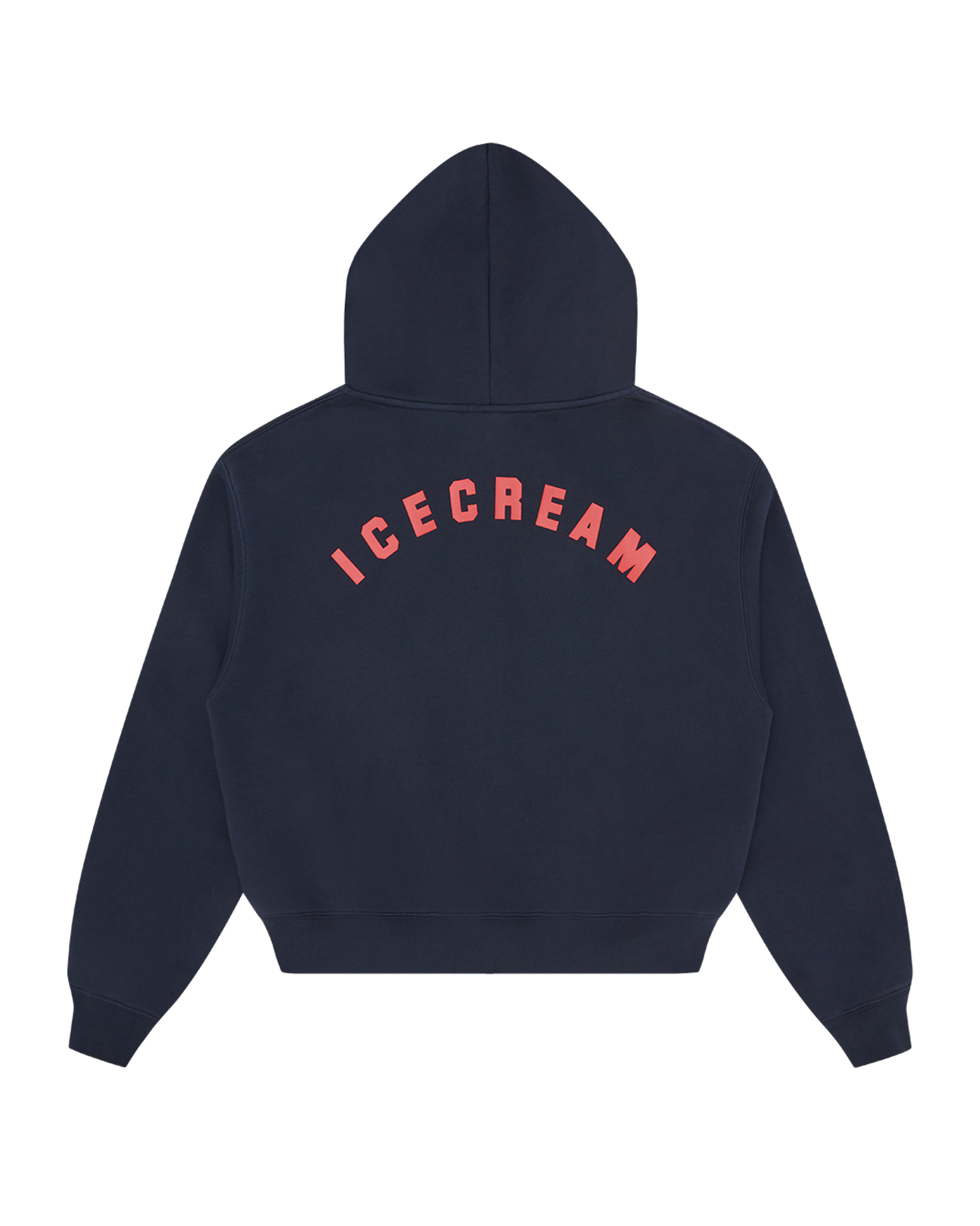 Cone Cropped Zip Through Hood presents the printed 'IC' logo and embroidered cone on the chest. It is detailed with the screen printed ICECREAM lettering on the back.