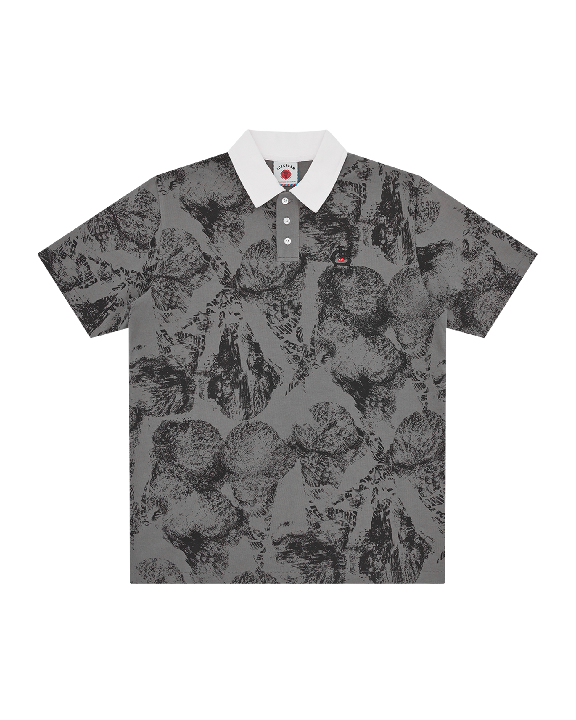 This Cone Stamp Polo Shirt all-over cone stamp tonal print, and it presents the embroidered IC logo at the front.