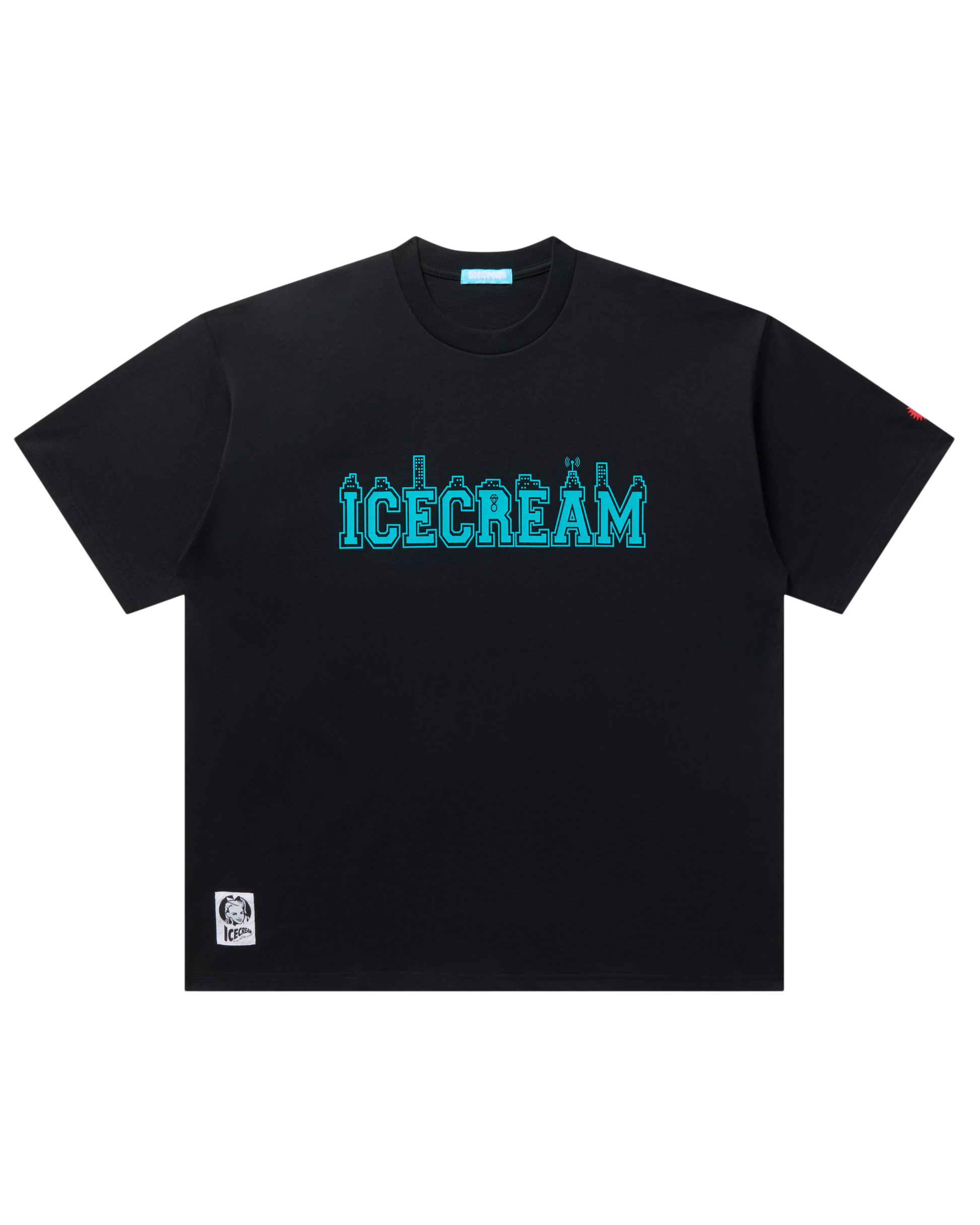 Cotton T-shirt featuring the Icecream logo on the front and "IC" along with the running dog on the back.