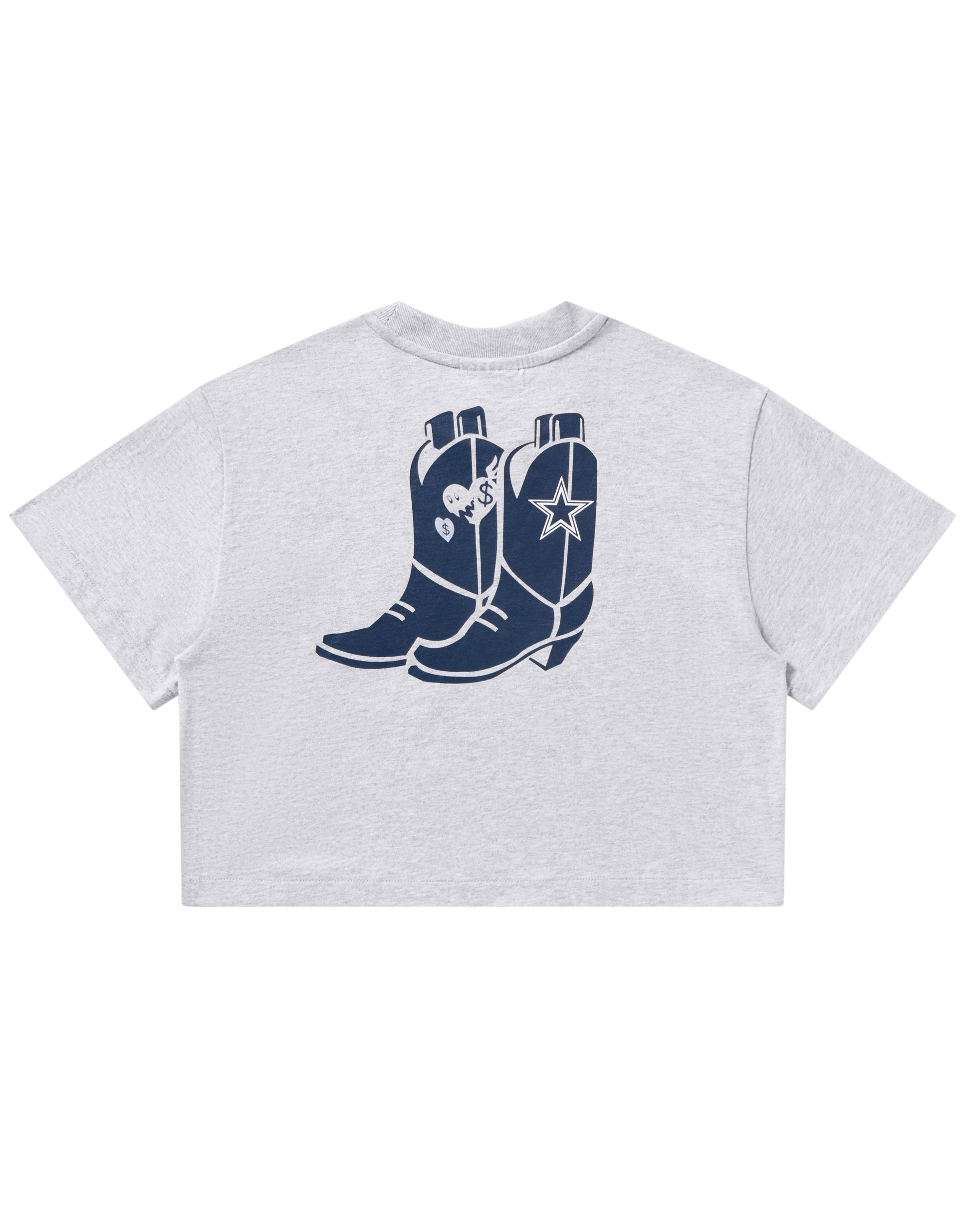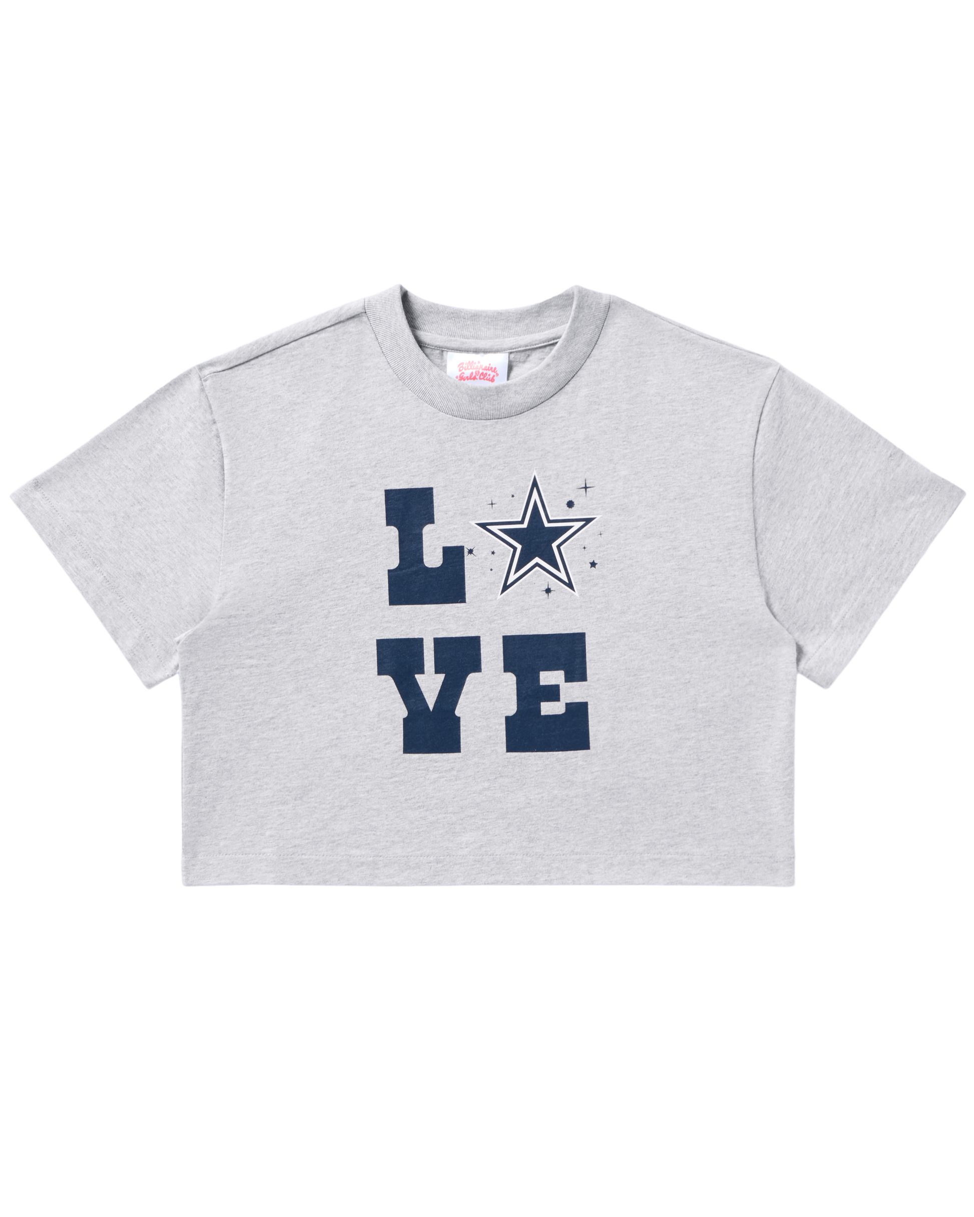 Dallas Cowboys Cropped Tee featuring "LOVE" and star logo on front, cowboy boot graphic on back.
