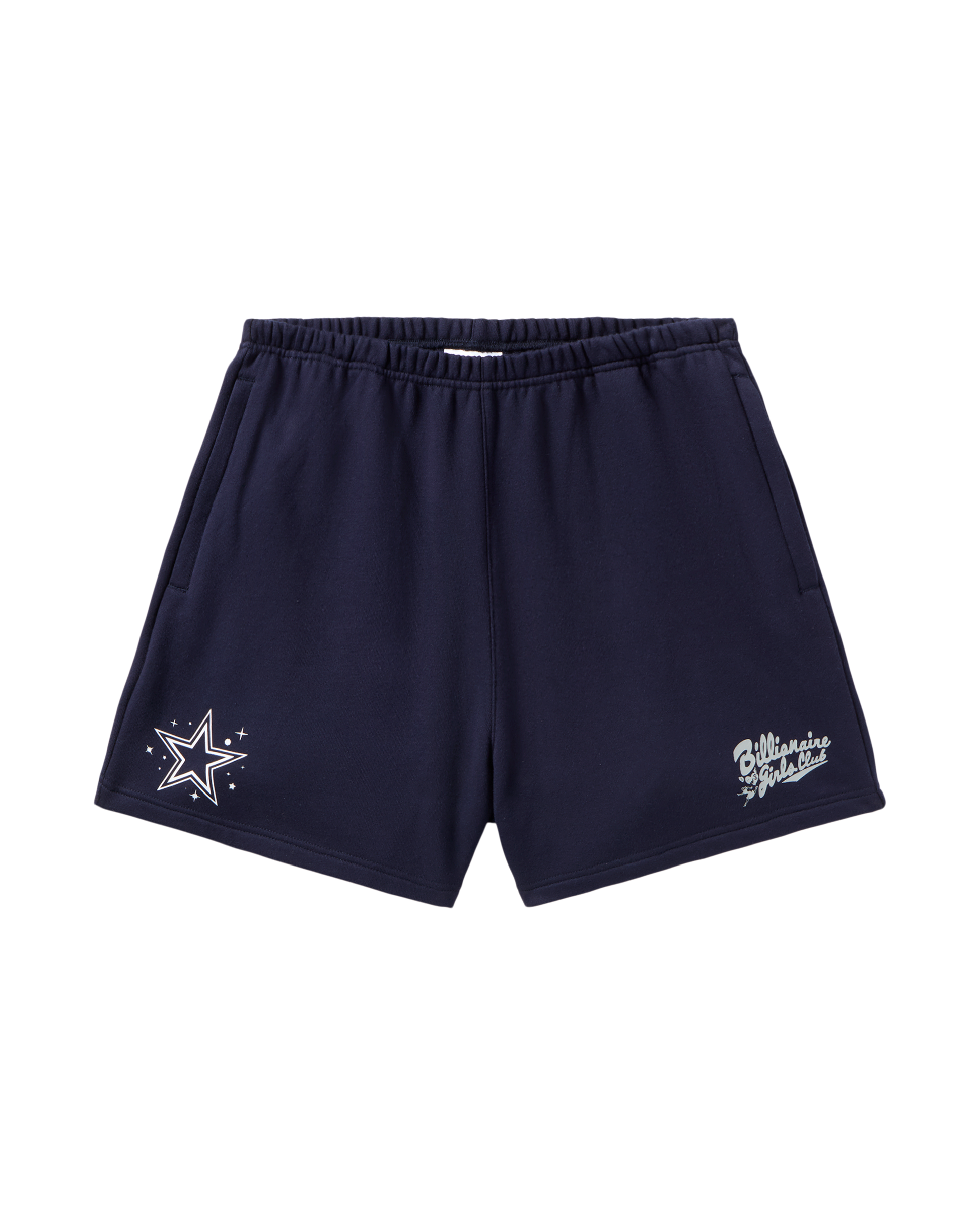 Dallas Cowboys SweatShorts with adjustable waistband, featuring the iconic Cowboys Star on the right leg, Billionaire Girls Club logo on the left, and Dallas text on the back.