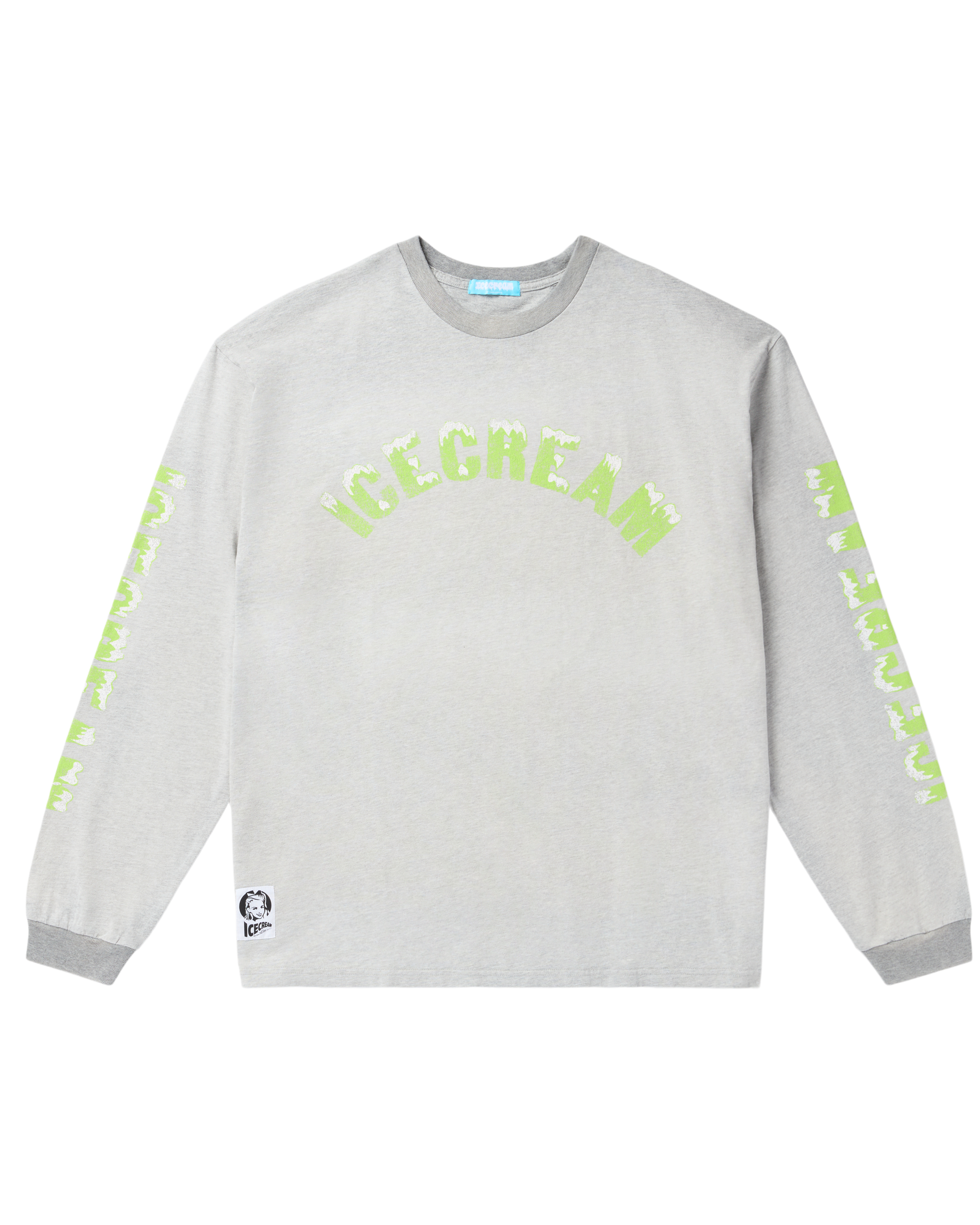 Cotton Long-sleeve featuring the Icecream logo on the front chest and sleeves, along with the Running Dog logo on the back.