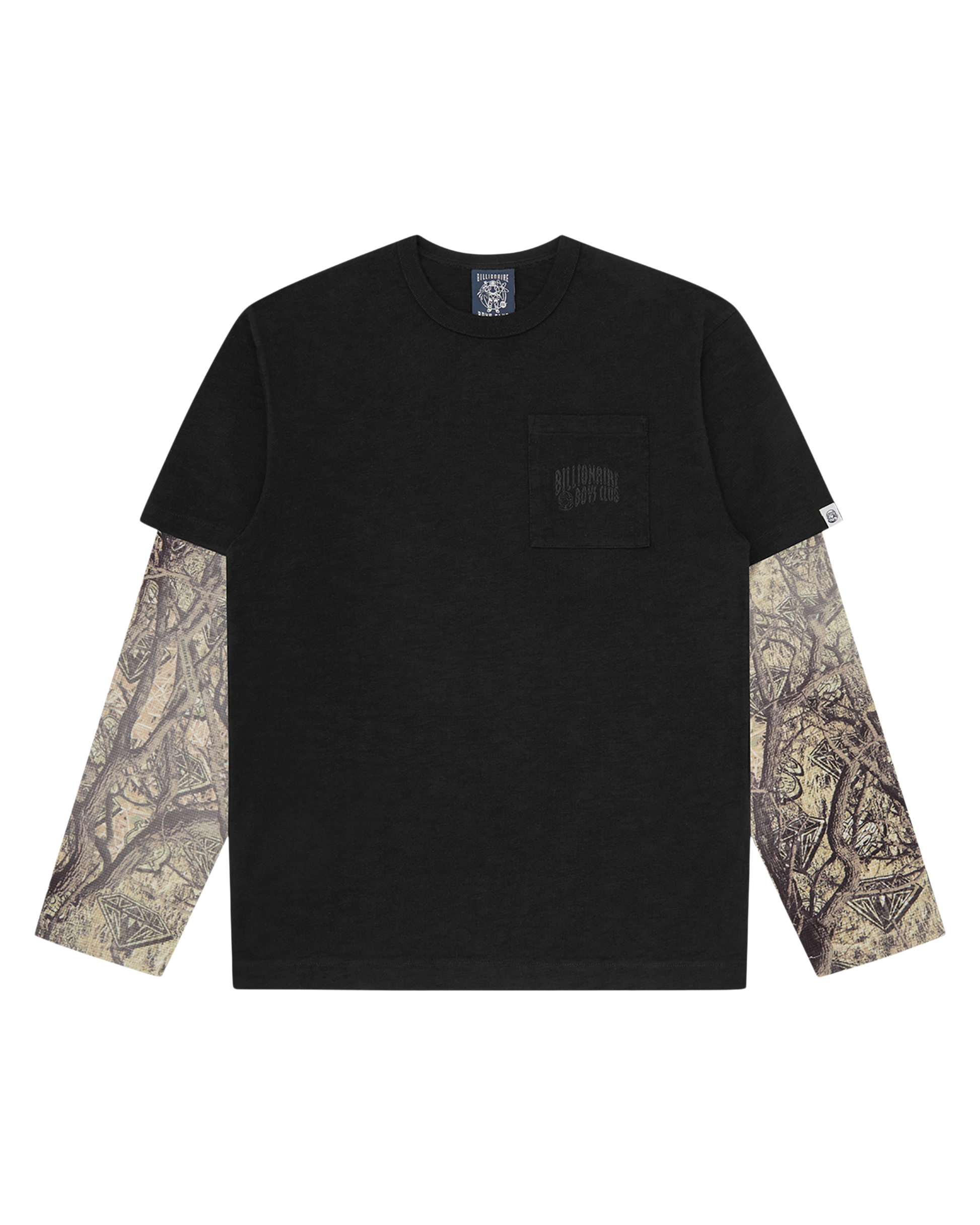 The Diamonds & Dollars Tree Camo Mock LS T-shirt is designed to create a layered look, featuring a tee worn over an all-over camo print long-sleeve tee. The top-layer comes with the iconic camo-filled Billionaire Boys Club Arch logo on the back and a direct embroidery on the front pocket.