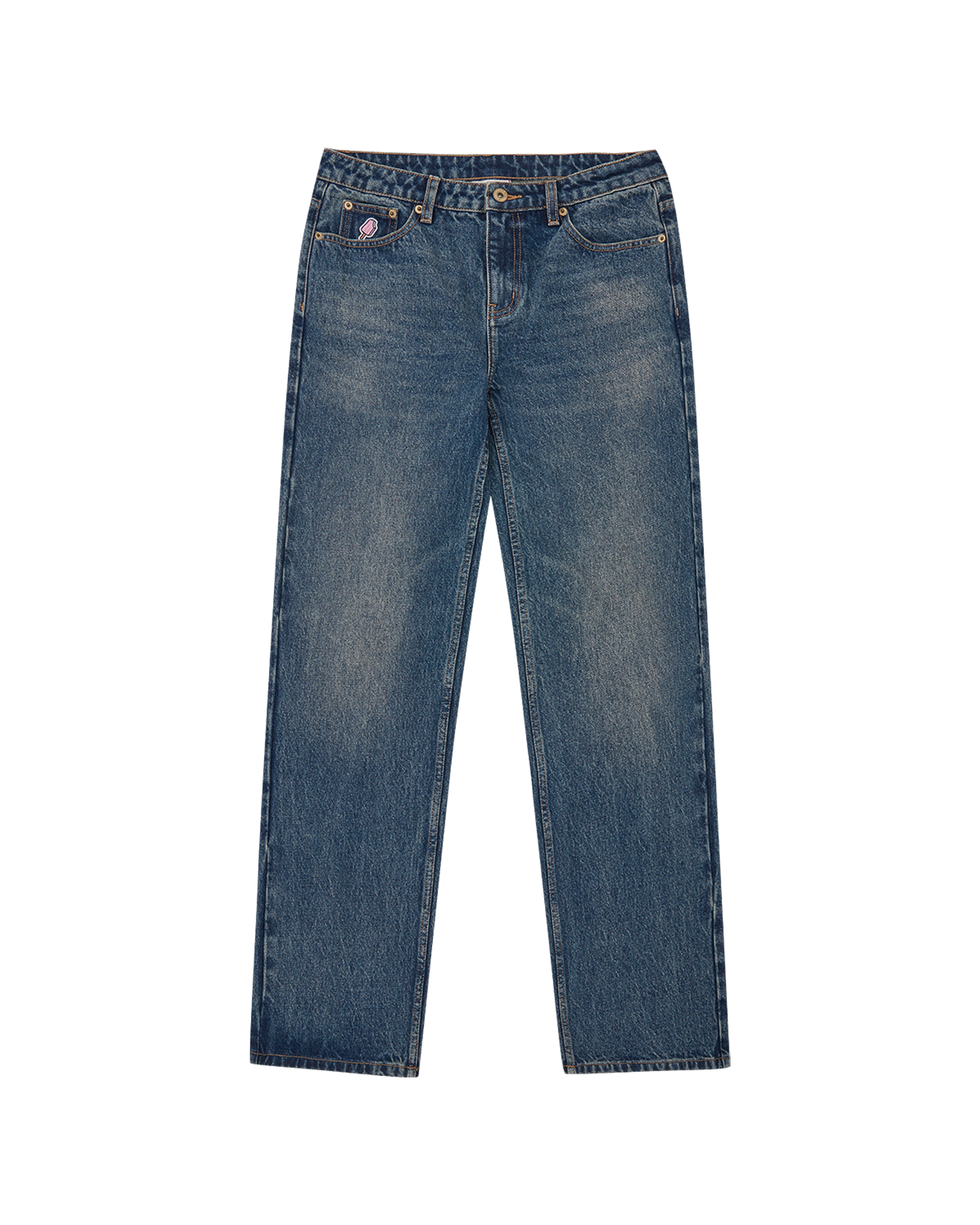 The Drippy Denim Pant presents the embroidered IC monogram on the back pockets and a pink popsicle at coin pocket. Zip-fastened fly. Loose wide leg fit, low rise.