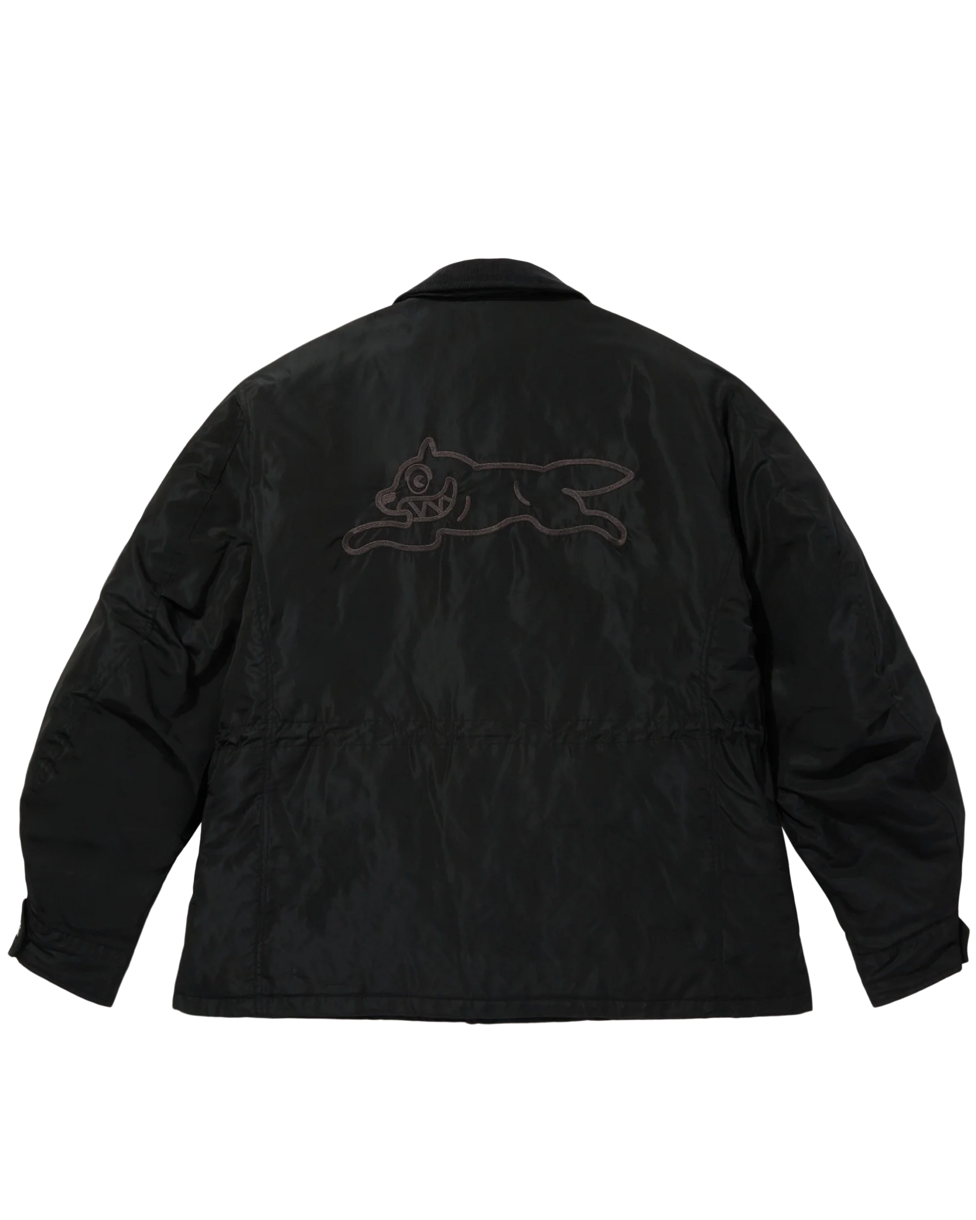 Lightweight military-inspired jacket featuring Icecream's iconic embroidered logo on the chest and pockets. Made from glossy nylon with a cozy boa collar and four functional front pockets. Heart logo patch on sleeve and brand patch on hem.