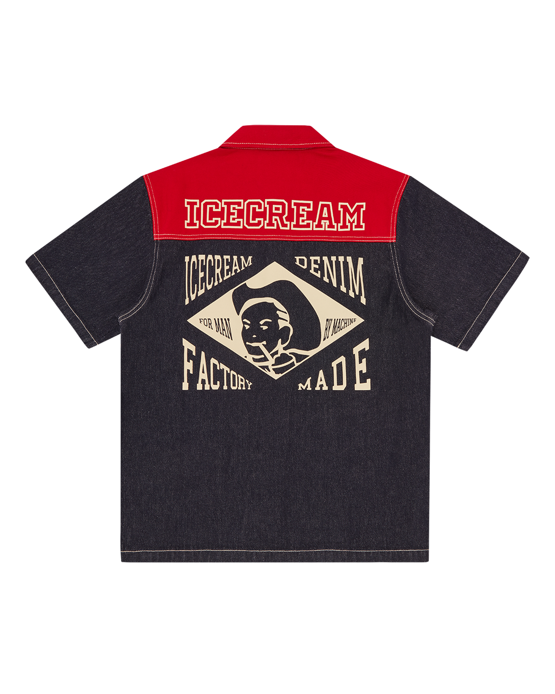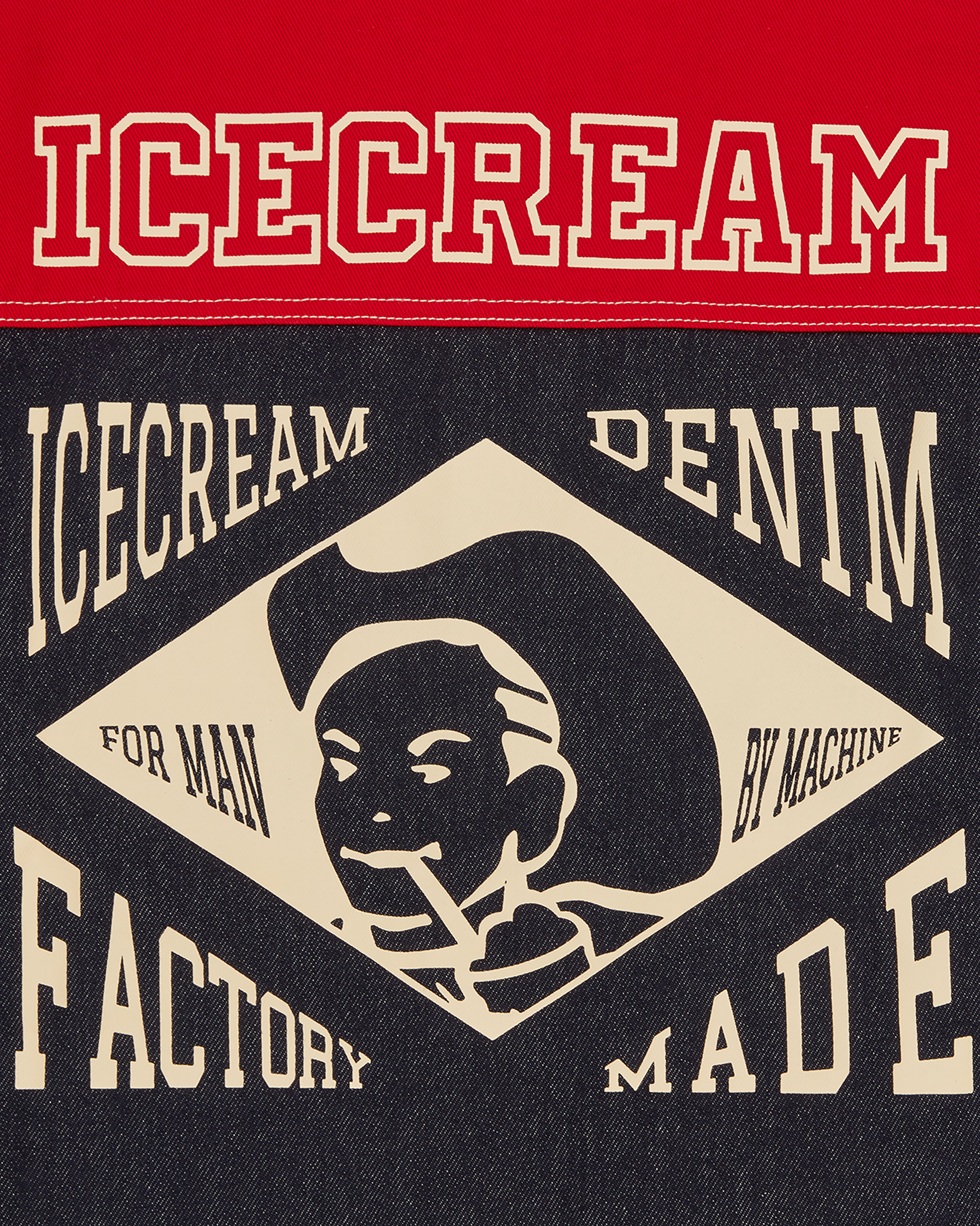 This Factory Made Denim Work Shirt presents the most iconic ICECREAM artworks on the lower right front and the ICECREAM graphic all-over the back. It is detailed with the embroidered ICECREAM logo on the left chest pocket flap.