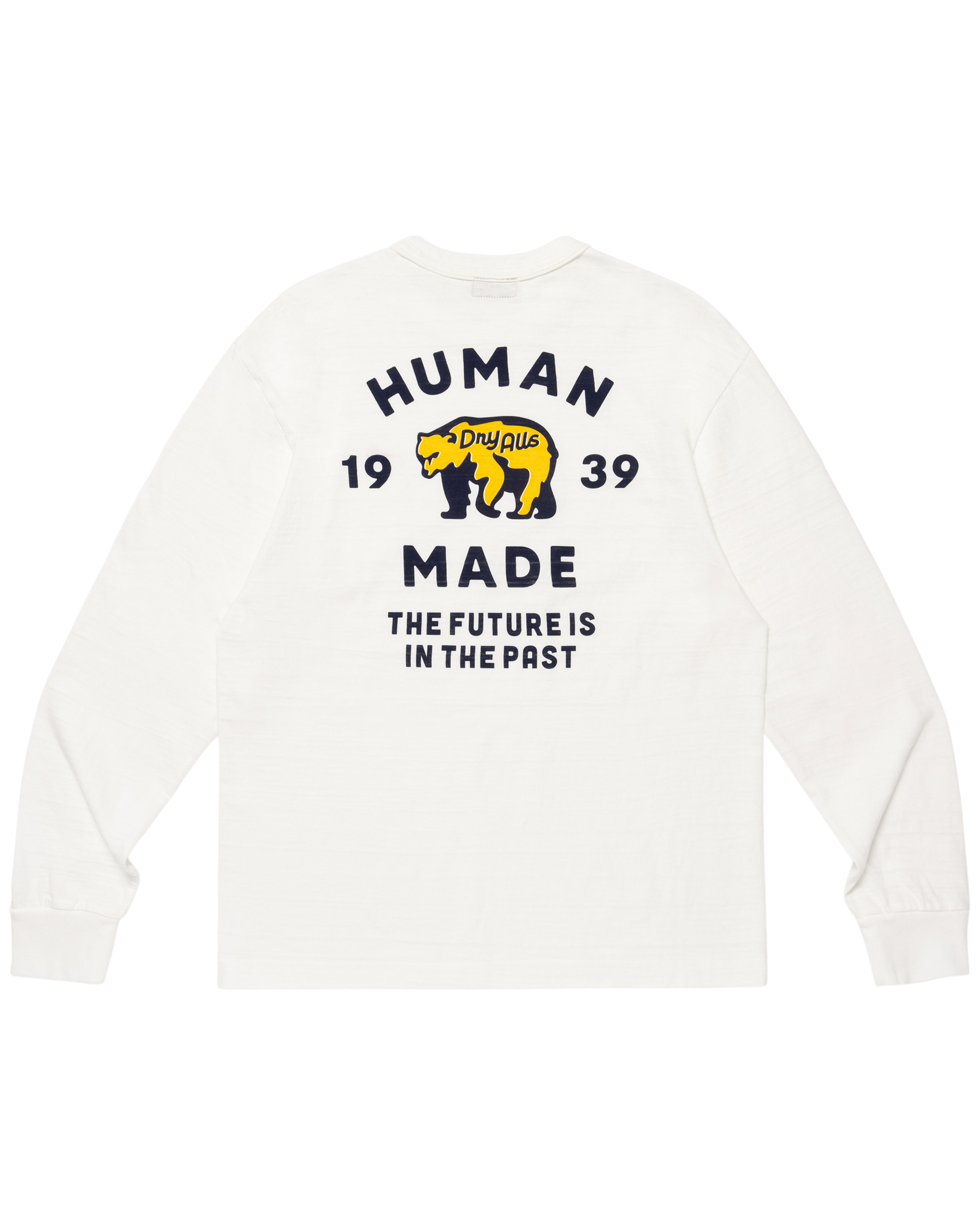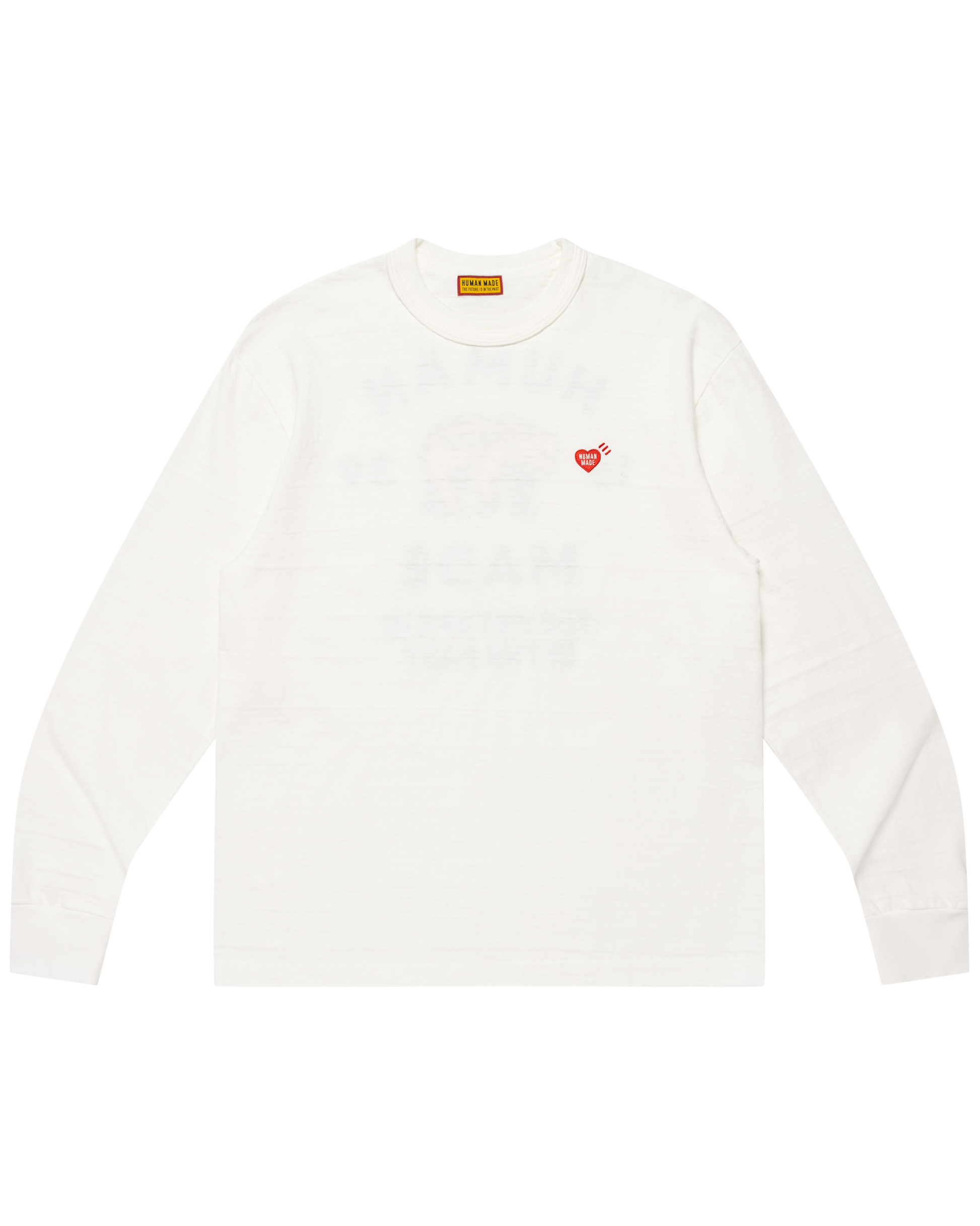 Human Made’s standard long sleeve T-shirt features a Heart logo patch on the left chest and an animal graphic on the back.