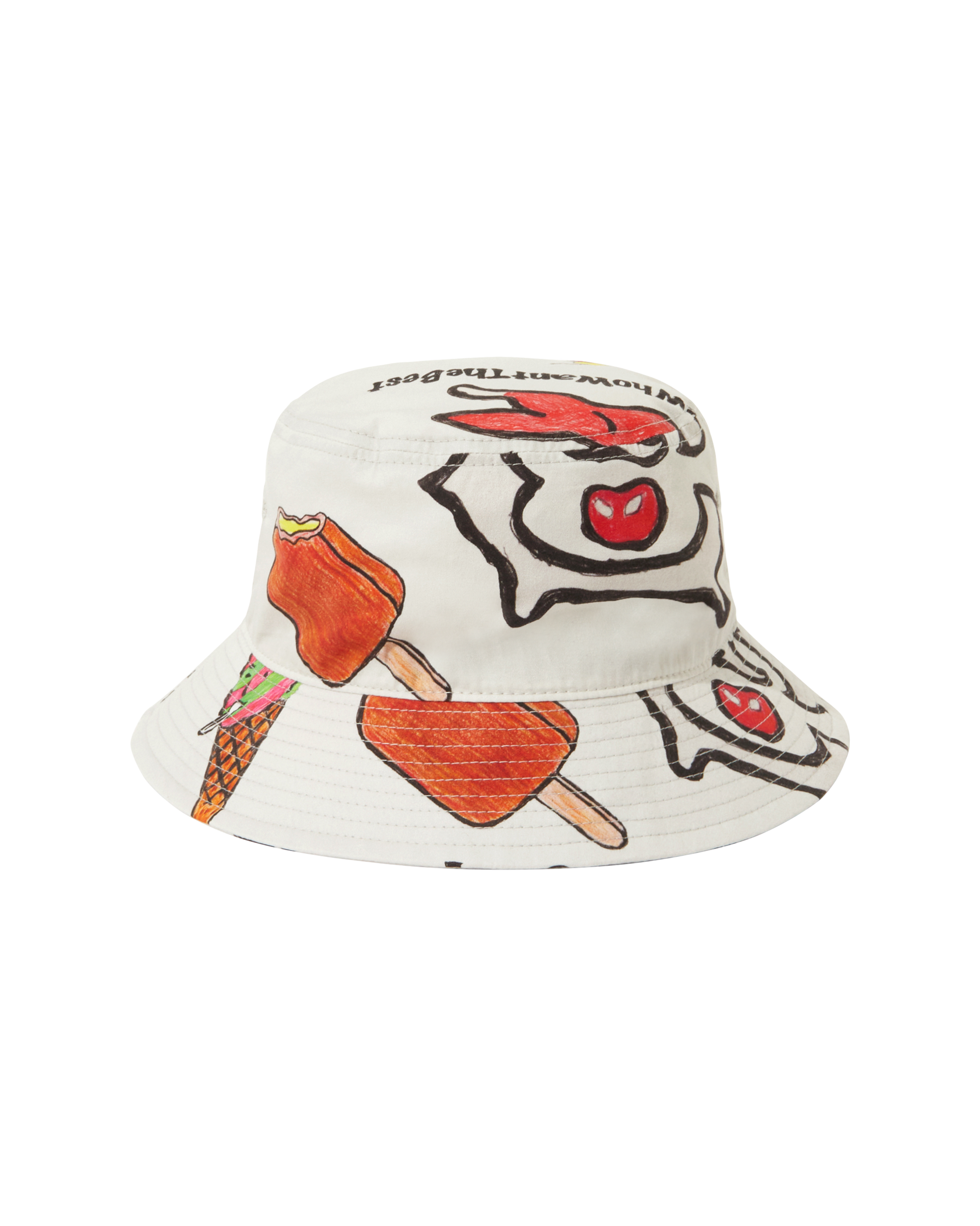 Bucket hat featuring a vibrant all-over print with playful graphics.