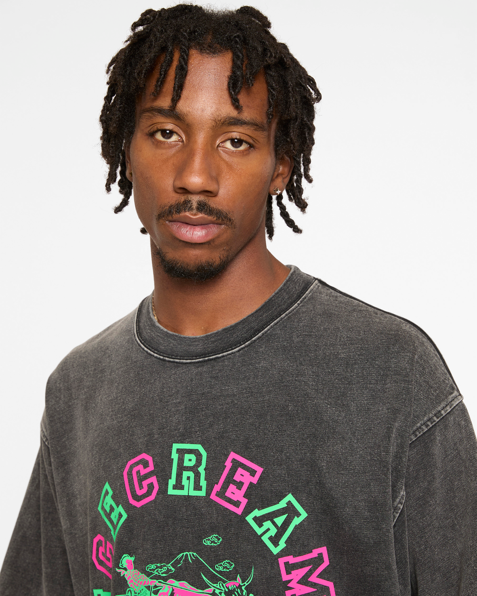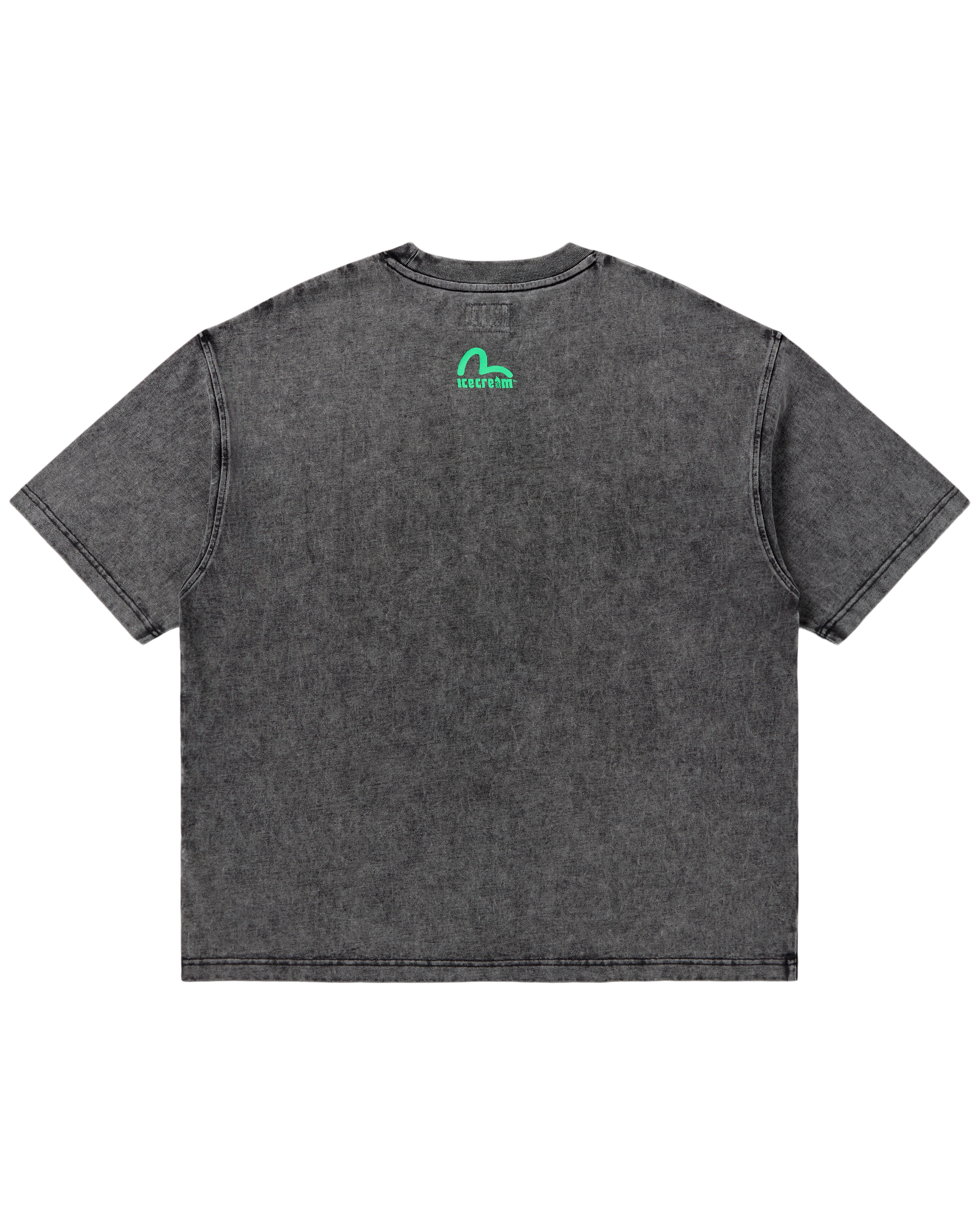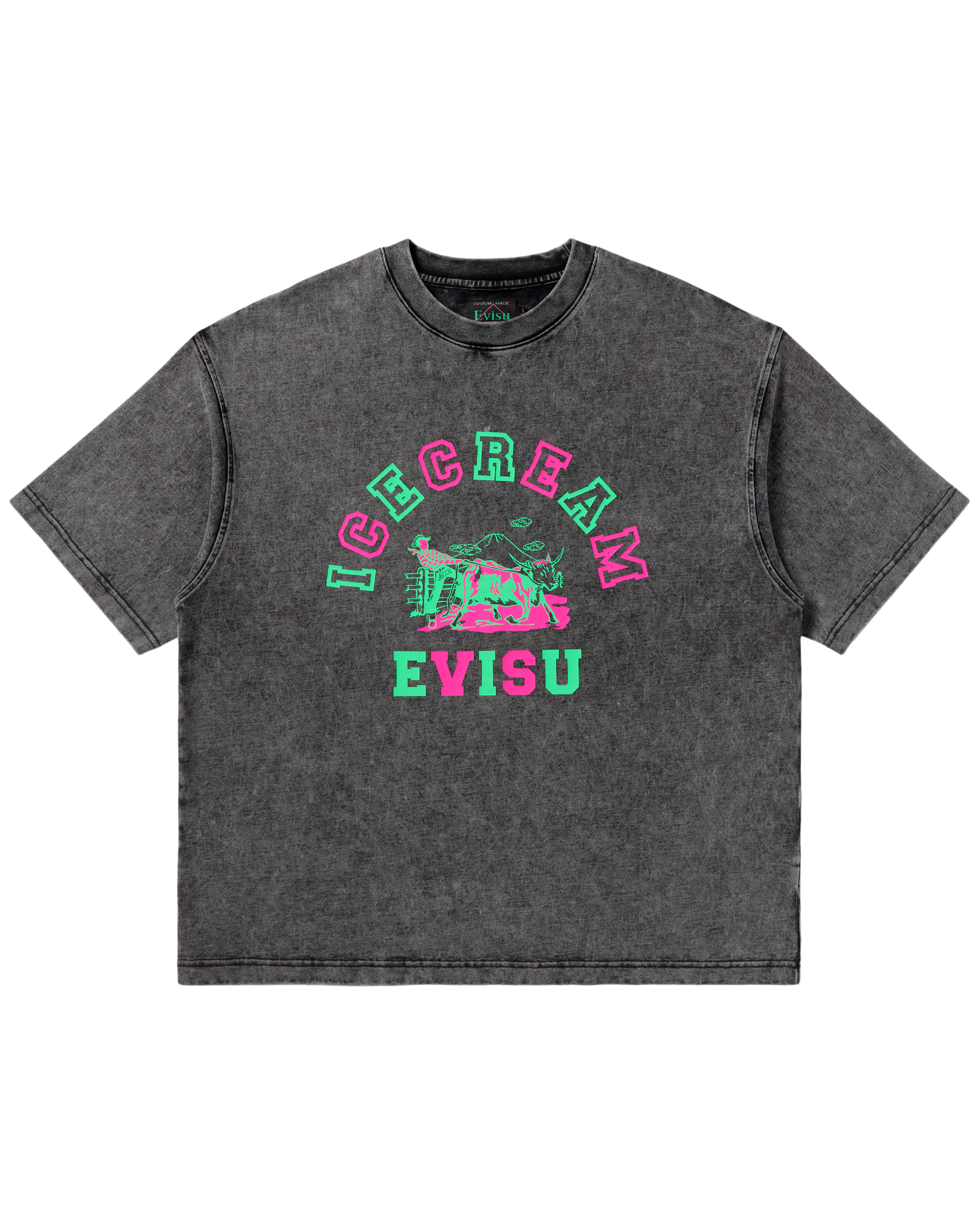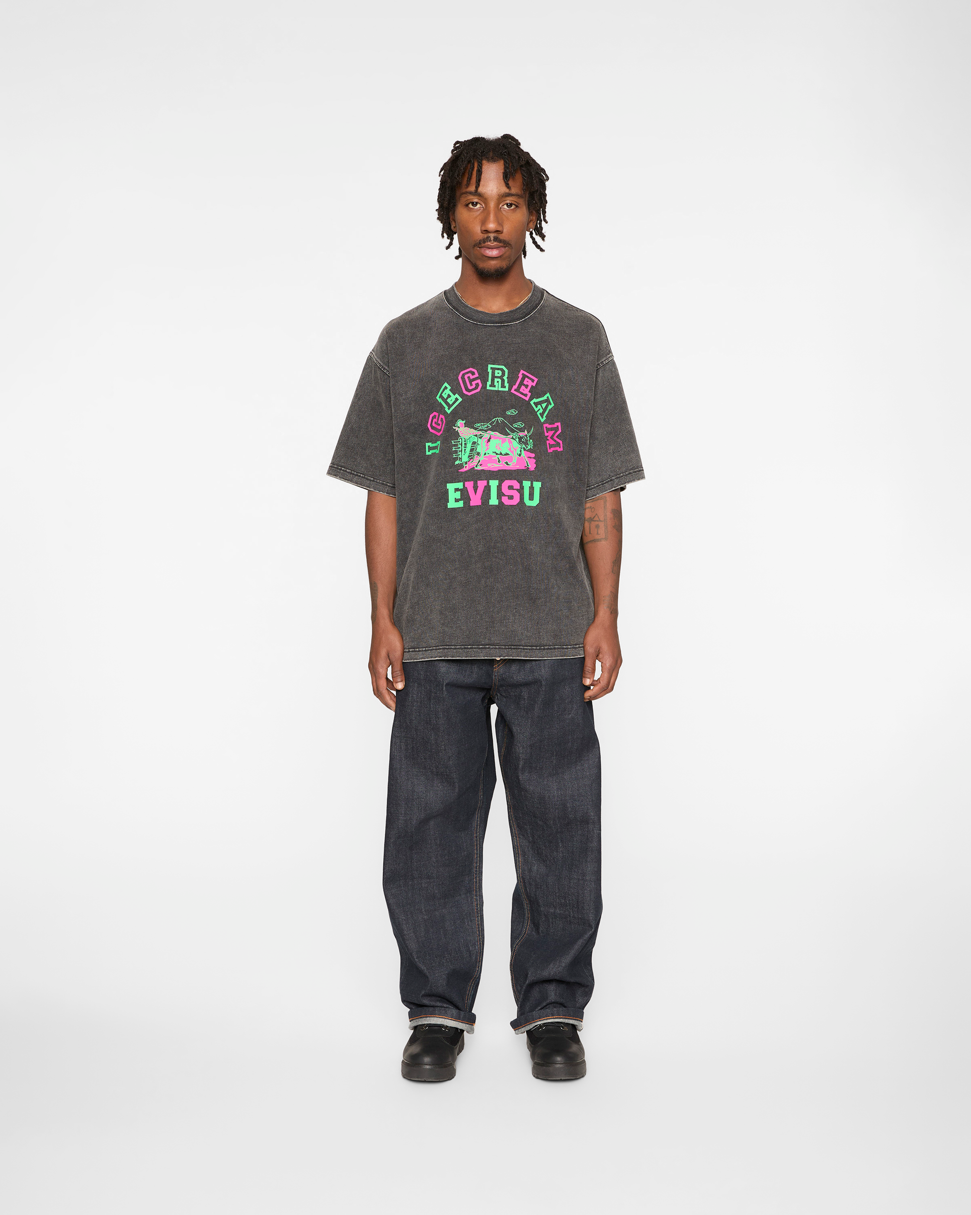 An oversized short sleeve tee featuring the ICECREAM x EVISU printed graphic, celebrating the collaboration’s fusion of streetwear heritage and Japanese denim culture. Crafted from 16S/1 100% cotton jersey for a premium feel and structured drape.