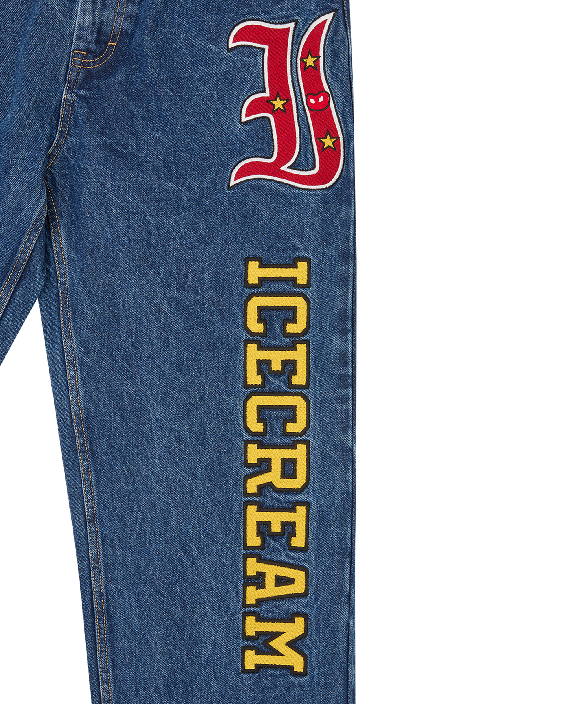 Mascot Denim Pants feature the ICECREAM logo and graphic embroidered at front; it is detailed with the embroidered 'IC' lettering on back pockets and a zip-fastened fly. Loose fit.