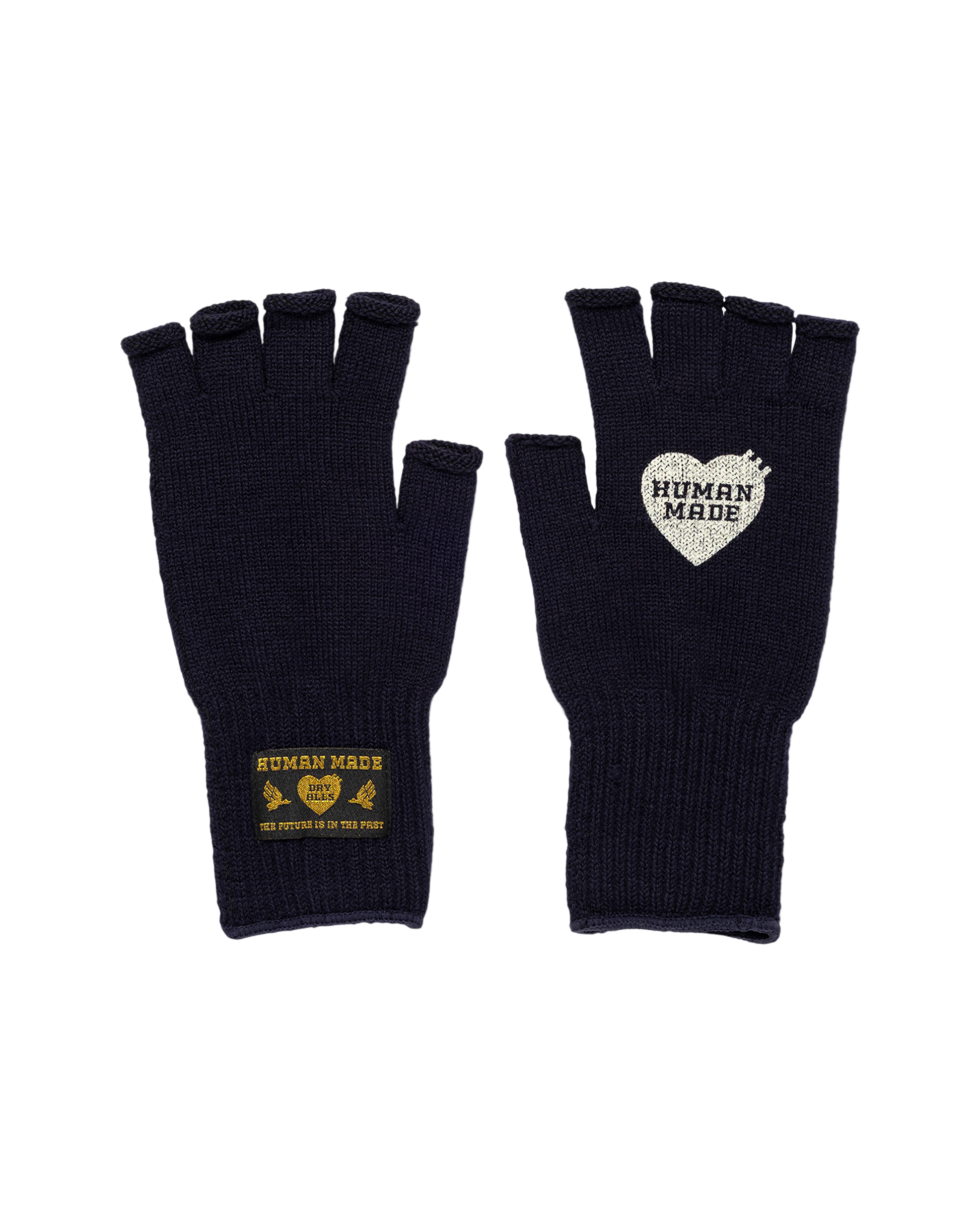 ・ Fingerless military gloves featuring Human Made printed on top of the right hand.