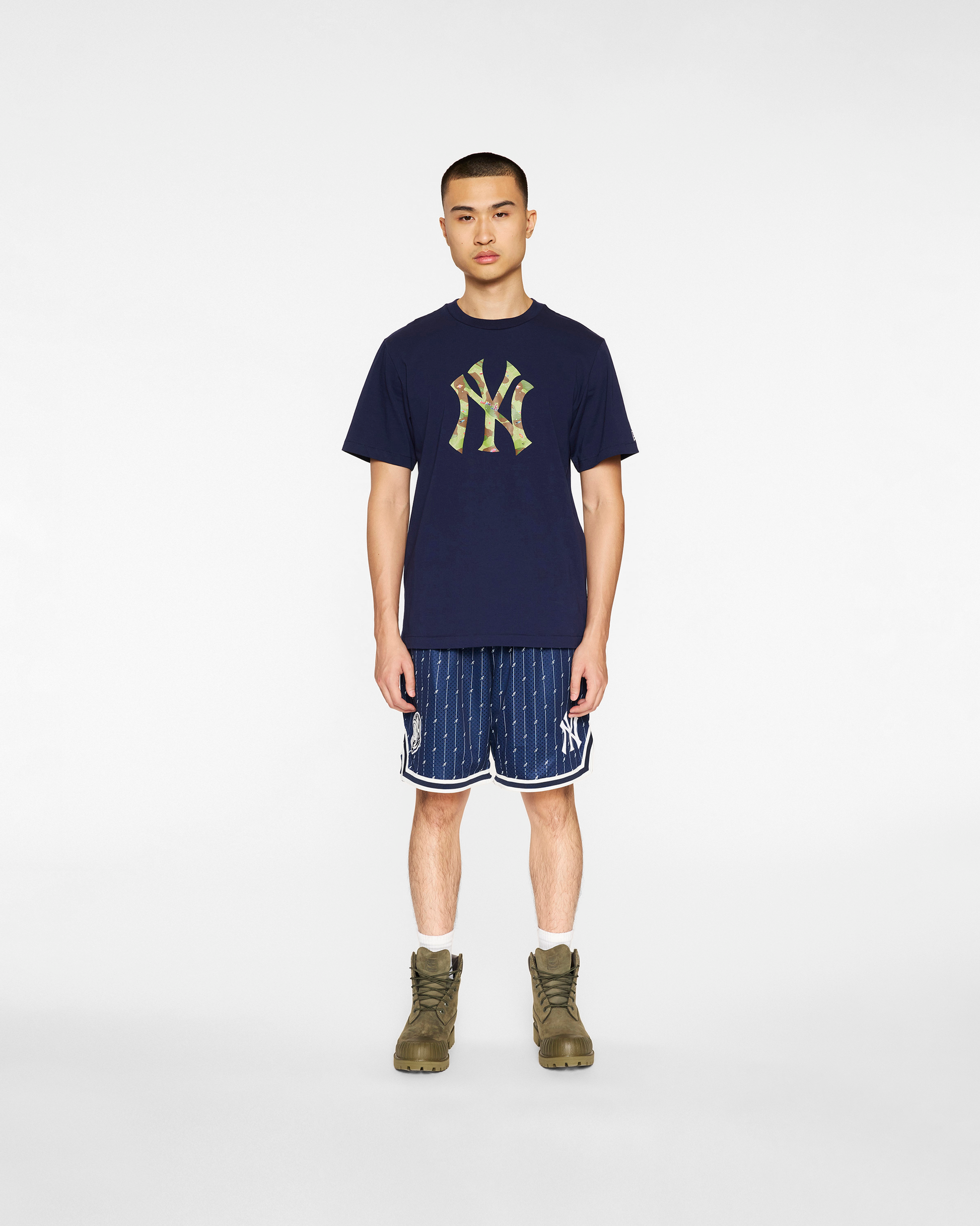 Tee featuring a graphic of the New York Yankees logo with space camo graphic fill.