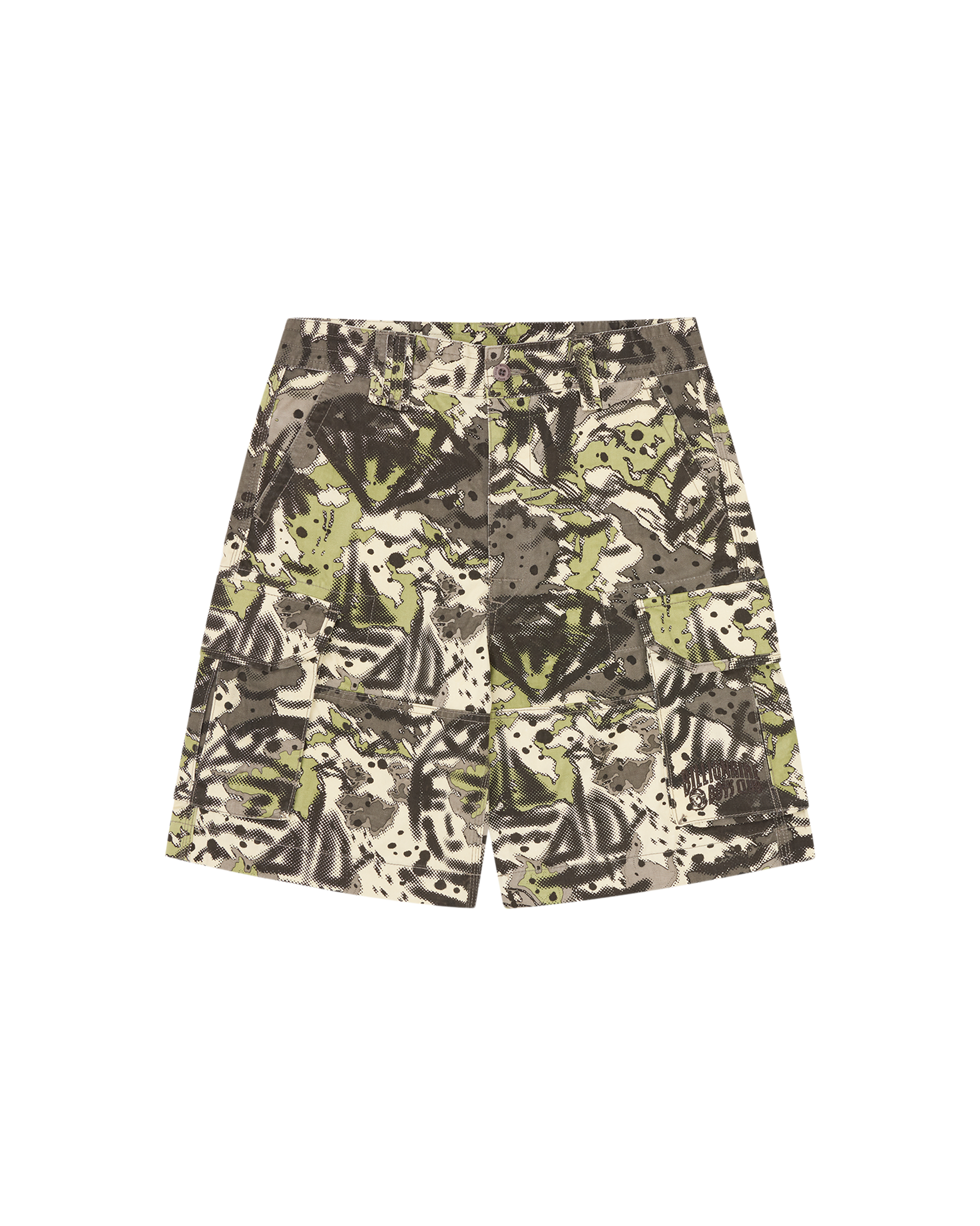 The Overlay Camo Cotton Cargo Shorts feature an all-over camo print and the embroidered Billionaire Boys Club Arch logo on the pocket flap.