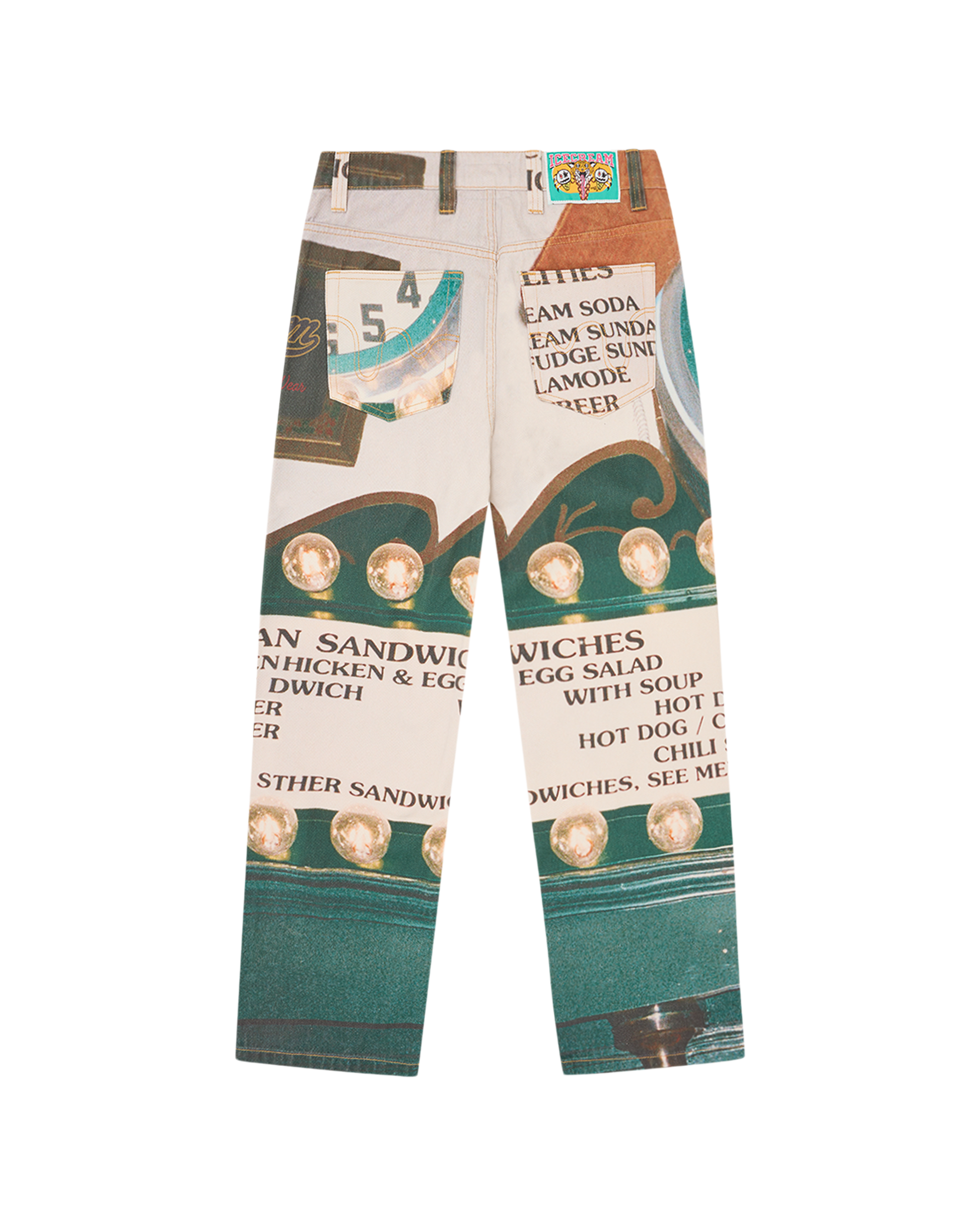 Parlor Double Scoop Denim Pants, feature an all-over seasonal graphic. Zip-fastened fly. Loose fit.