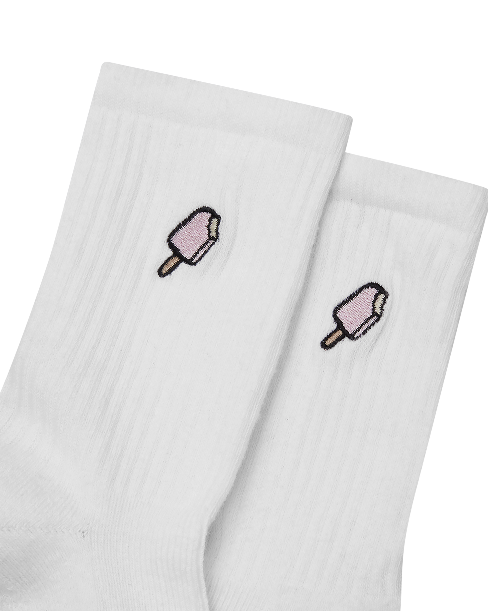 The Popsicle Ankle Socks present the popsicle embroidery at ankles and the ICECREAM logo on the sole.