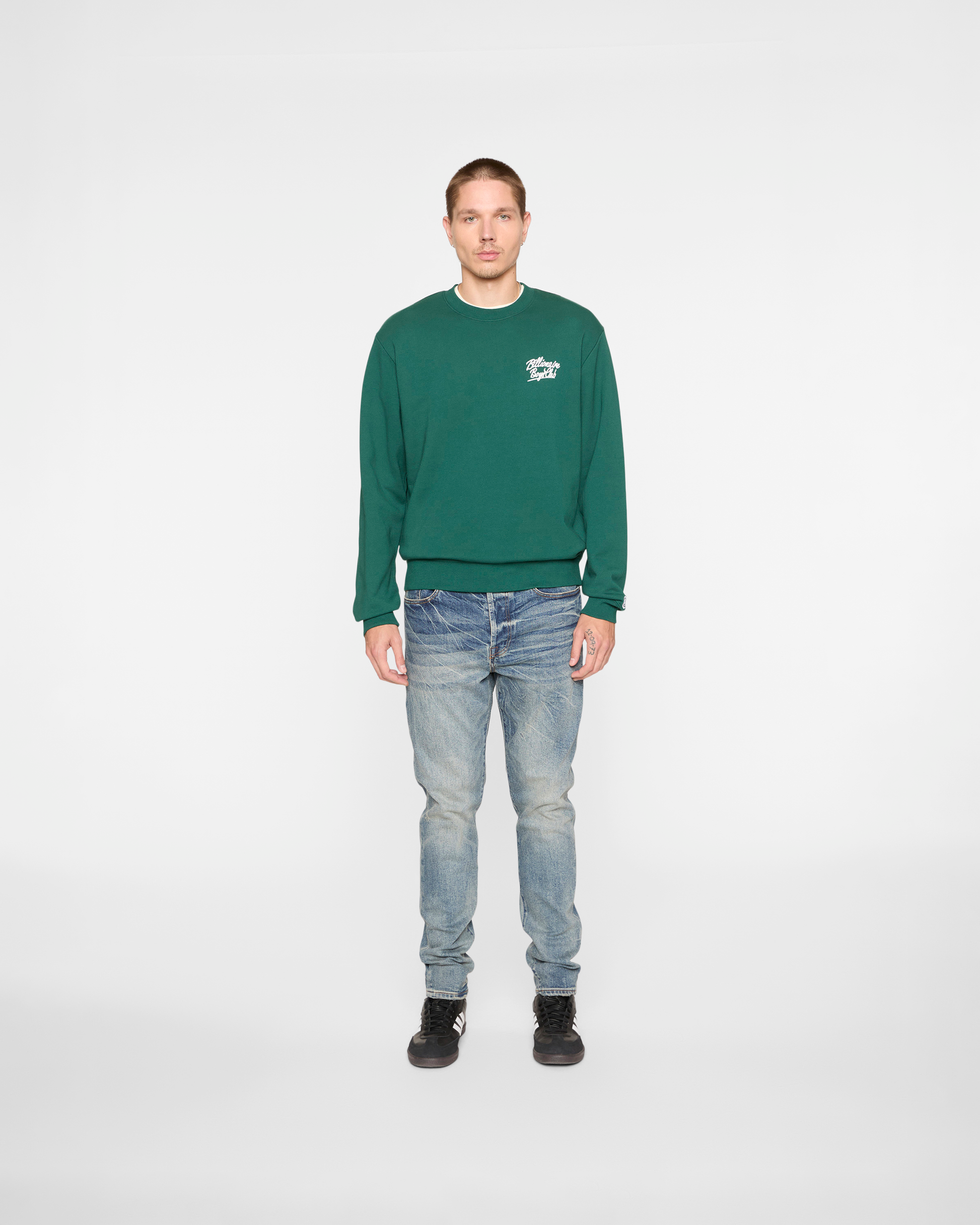 The Small Script Sweatshirt features the Script logo on the front left chest and the Standing Astronaut printed on the back neck.