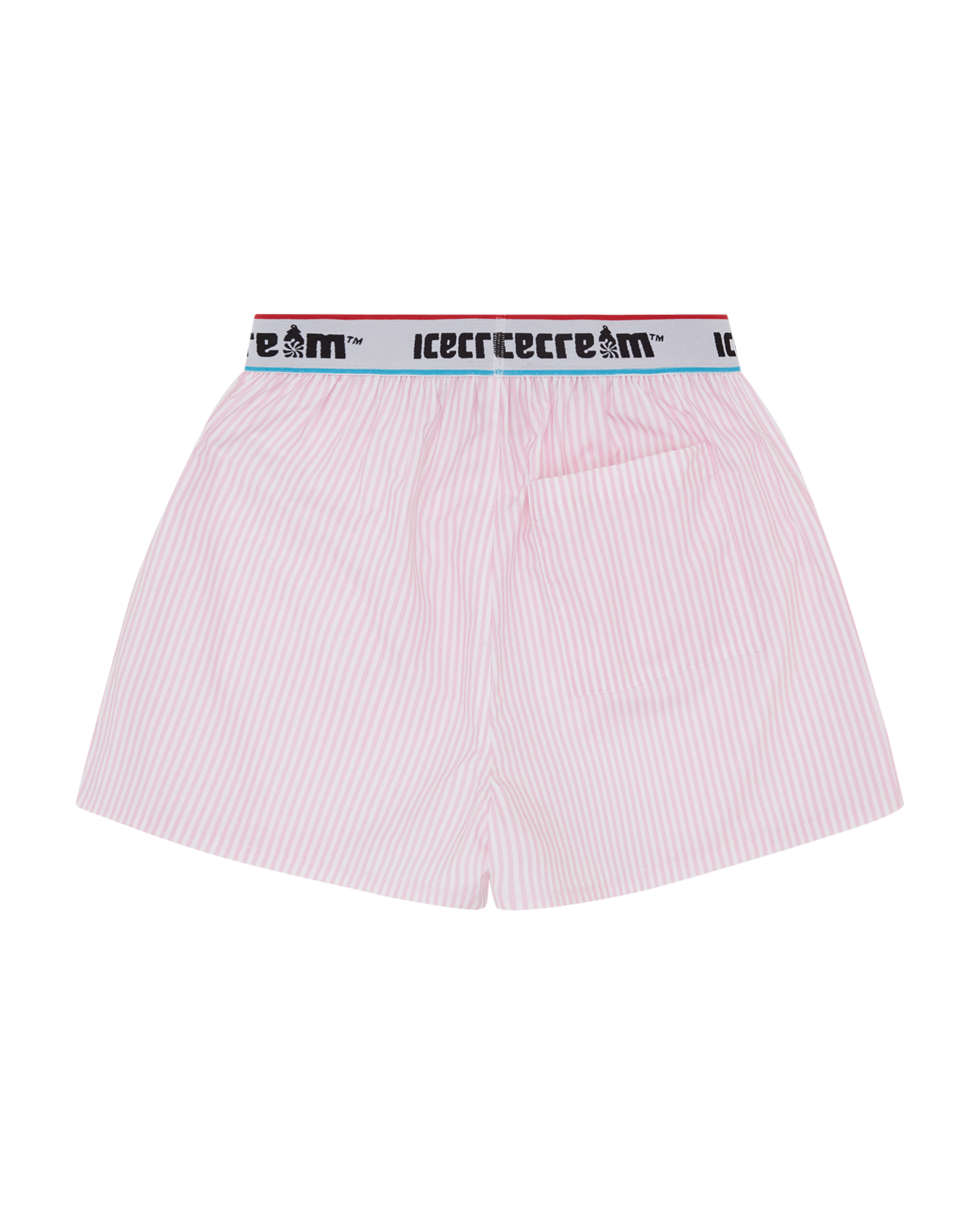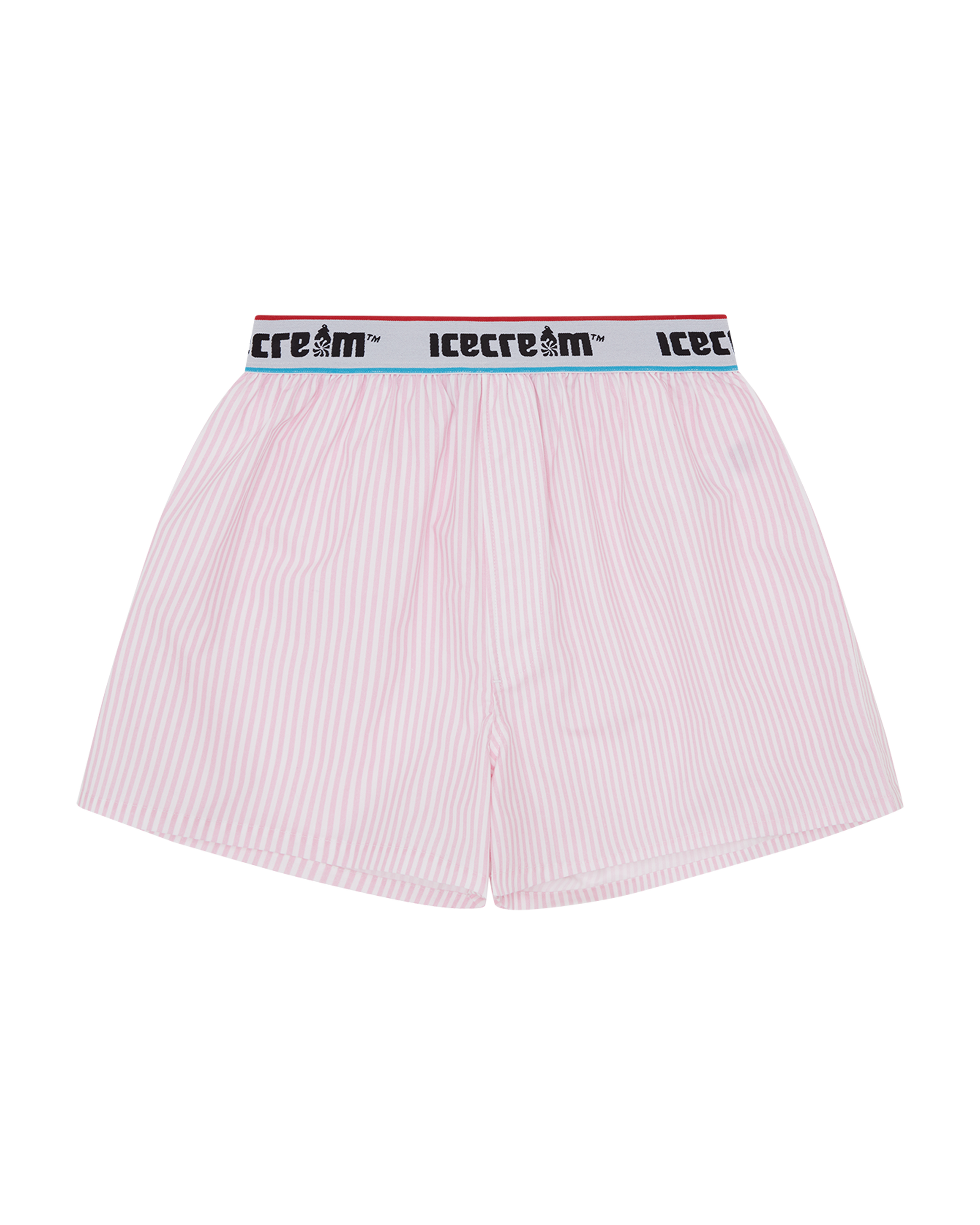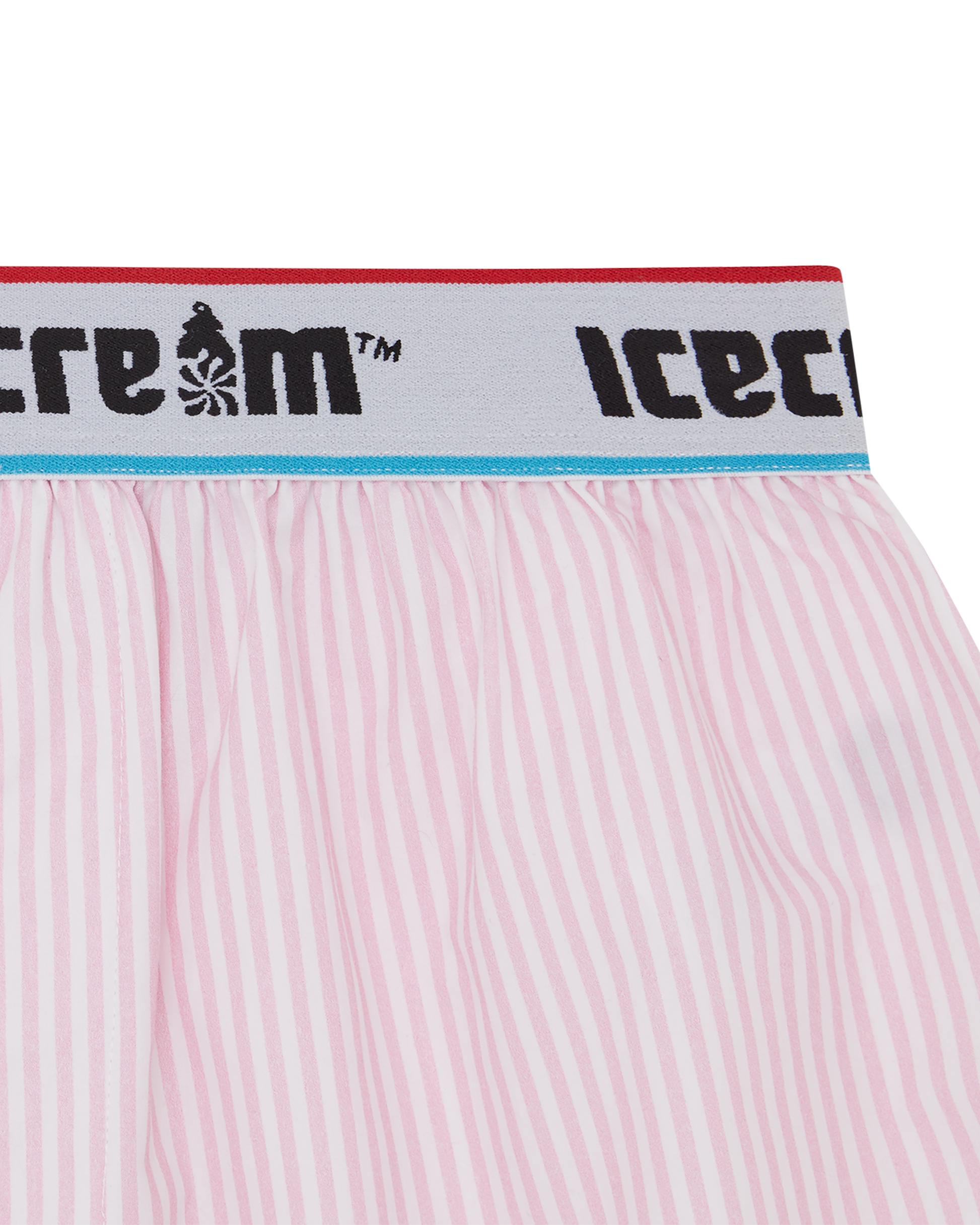 100% Cotton Soft Serve Boxer Short with an all-over pink stripe pattern and presenting the ICECREAM branded waistband.