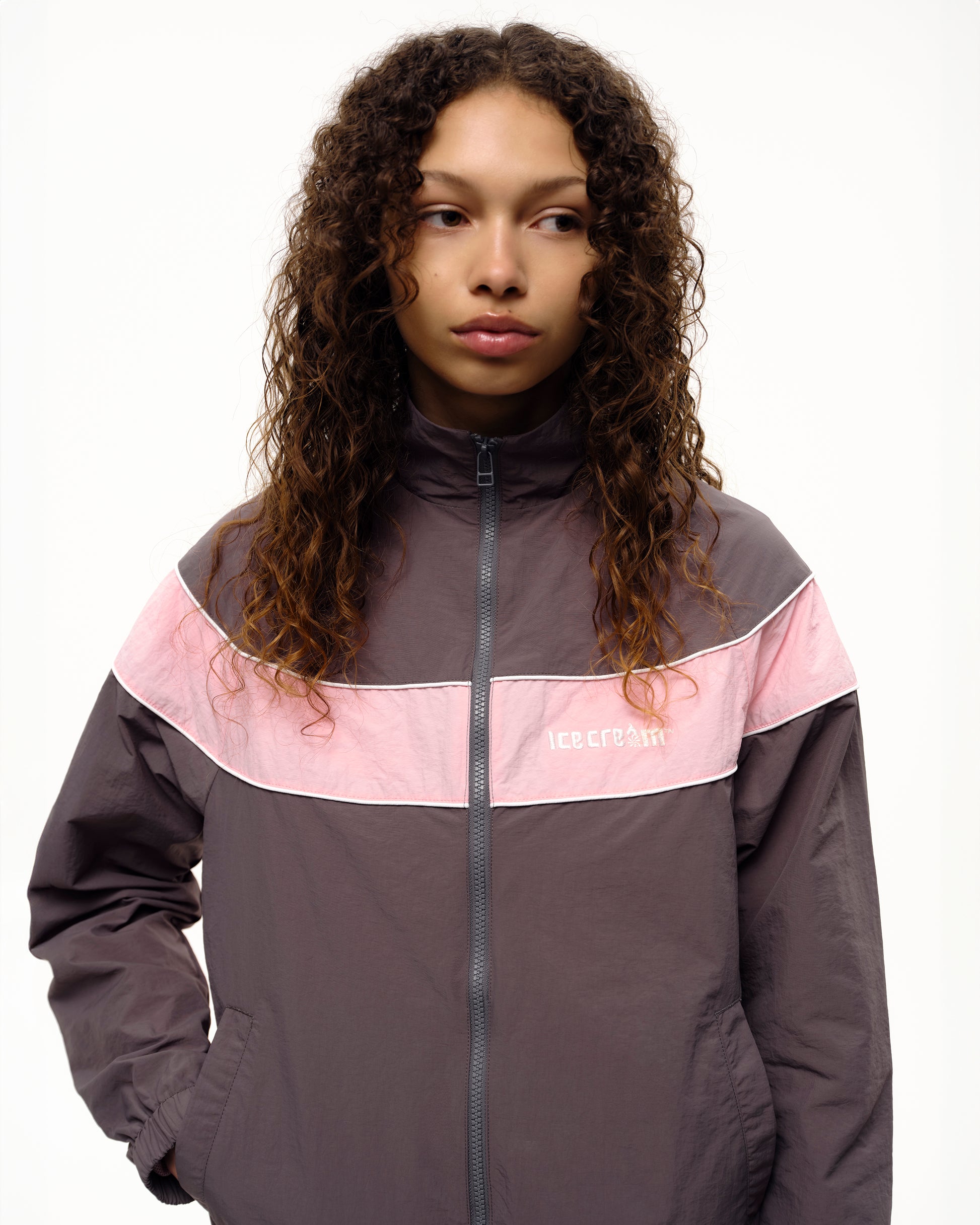 This Soft Serve Nylon Track Top presents the embroidered ICECREAM logo featuring both in front and back.