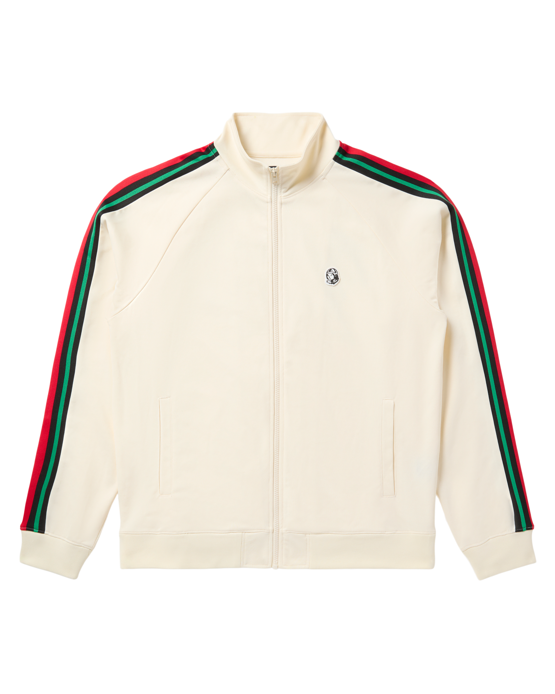 The Soundcheck Track Jacket features a zip-front, with embroidery of the Helmet Head logo on the front, and the Script logo on the back.