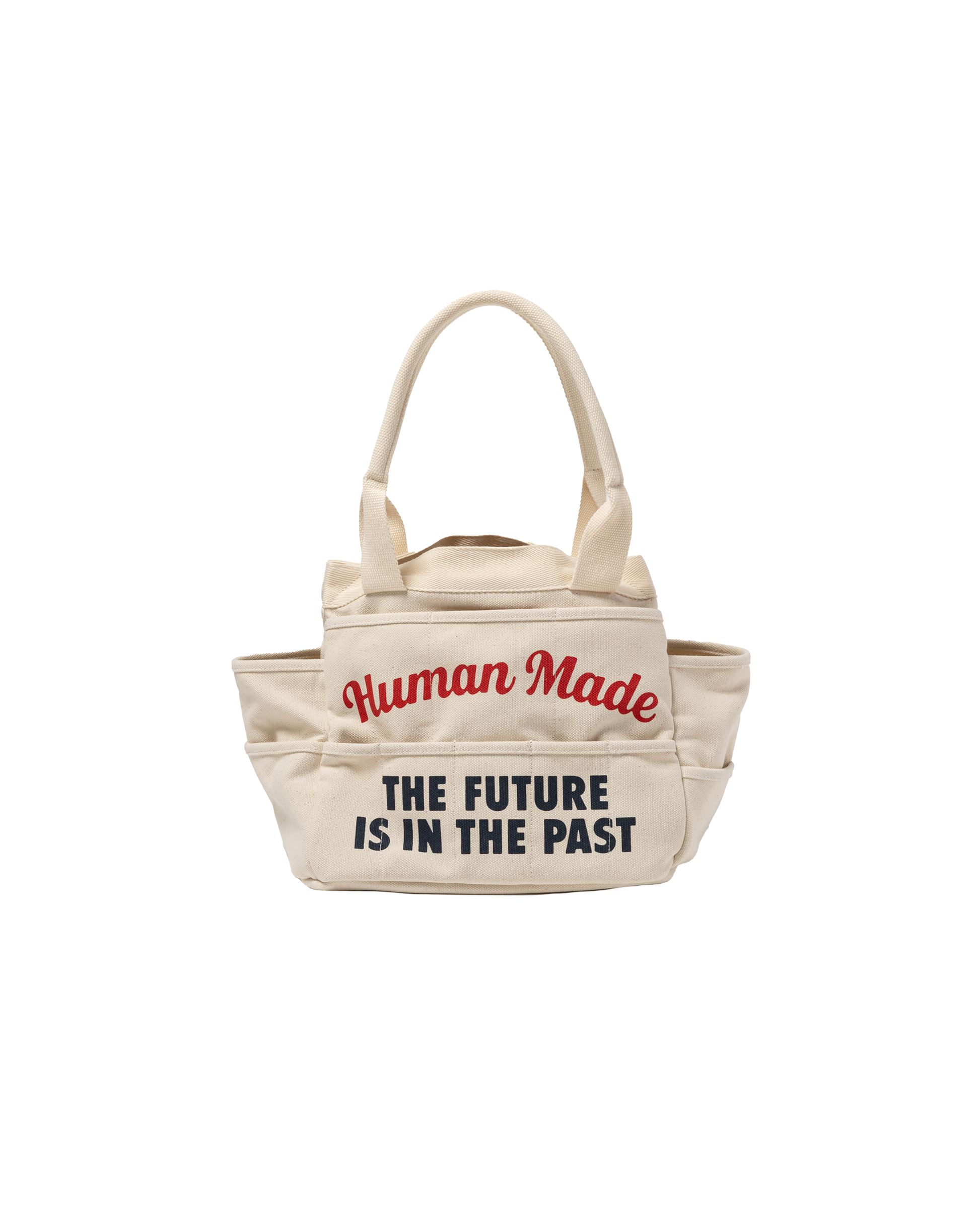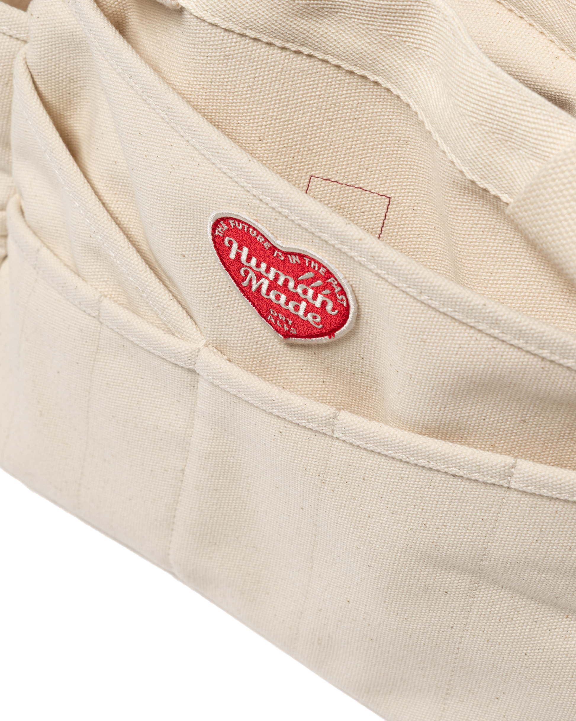 The Multi-Pocket Tool Bag is crafted from durable 18oz cotton canvas with functional design details and signature HUMAN MADE graphics.