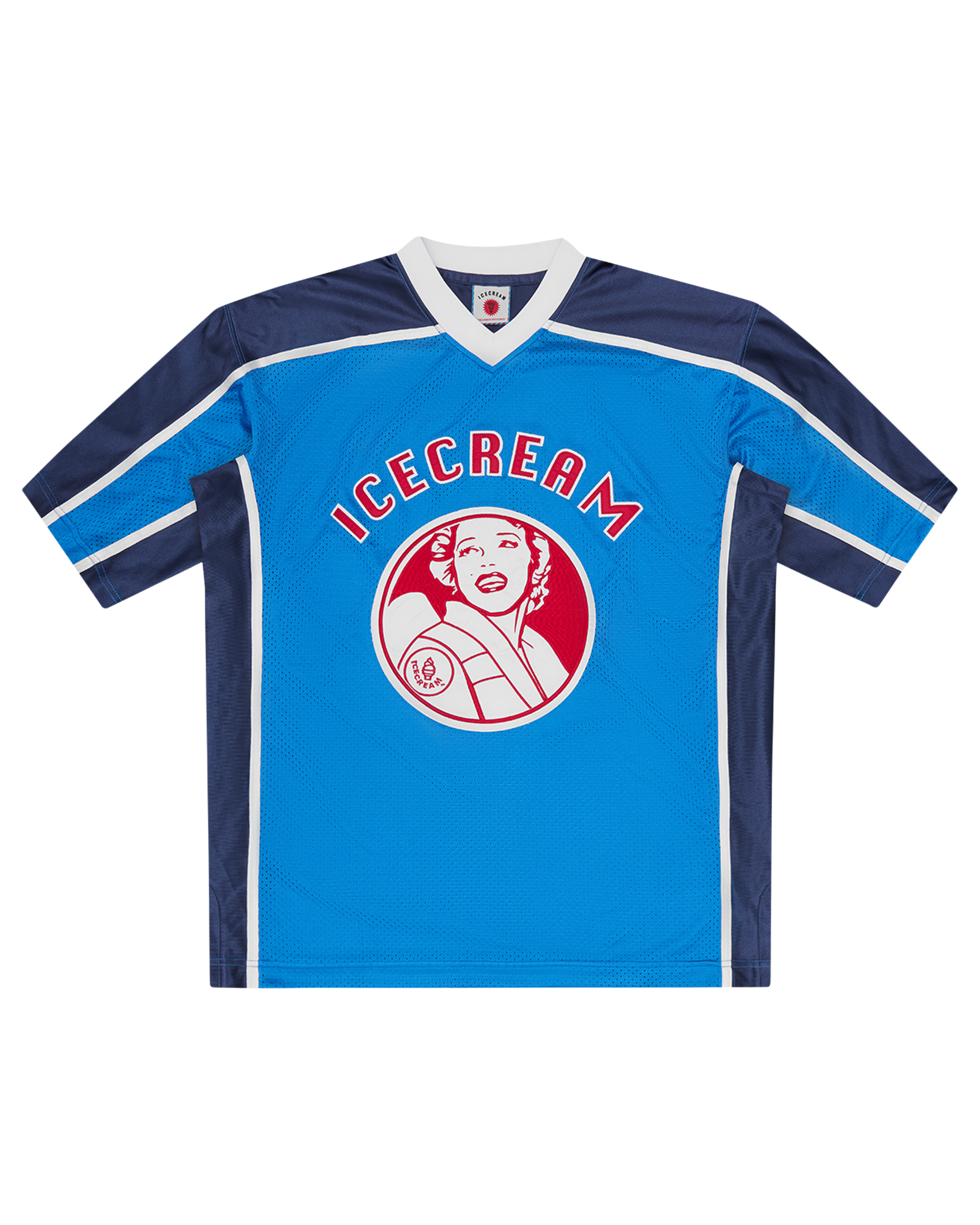 This Waitress Football Top presents a mesh semi-front and back for extra-breathability; it is decorated with the ICECREAM waitress appliqué graphic on the front and it is detailed with a contrasting piping and panels.