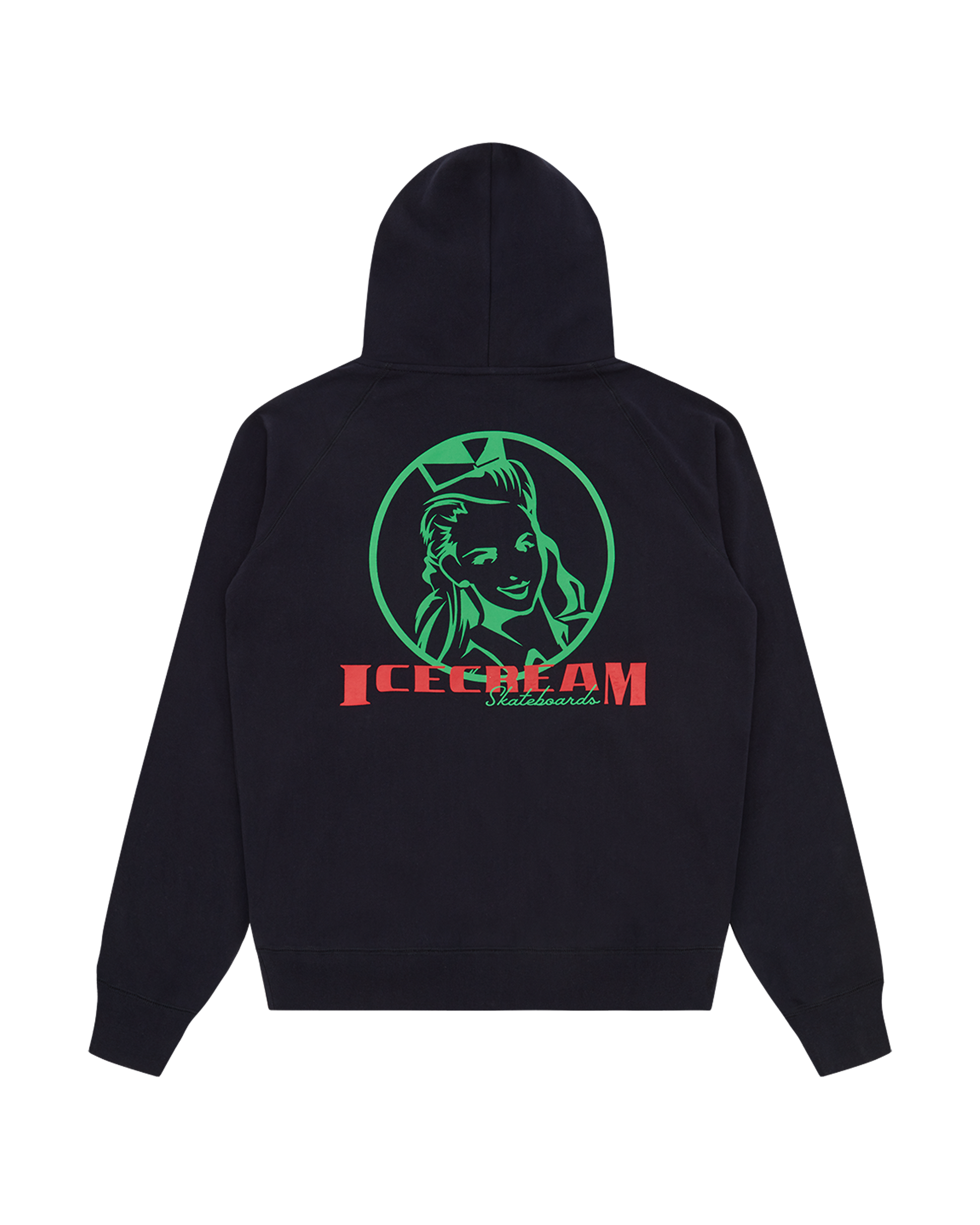 Constructed with a 100% cotton composition, the Waitress Zip Through Hood is detailed with a screen print logo to the chest and a back print graphic.