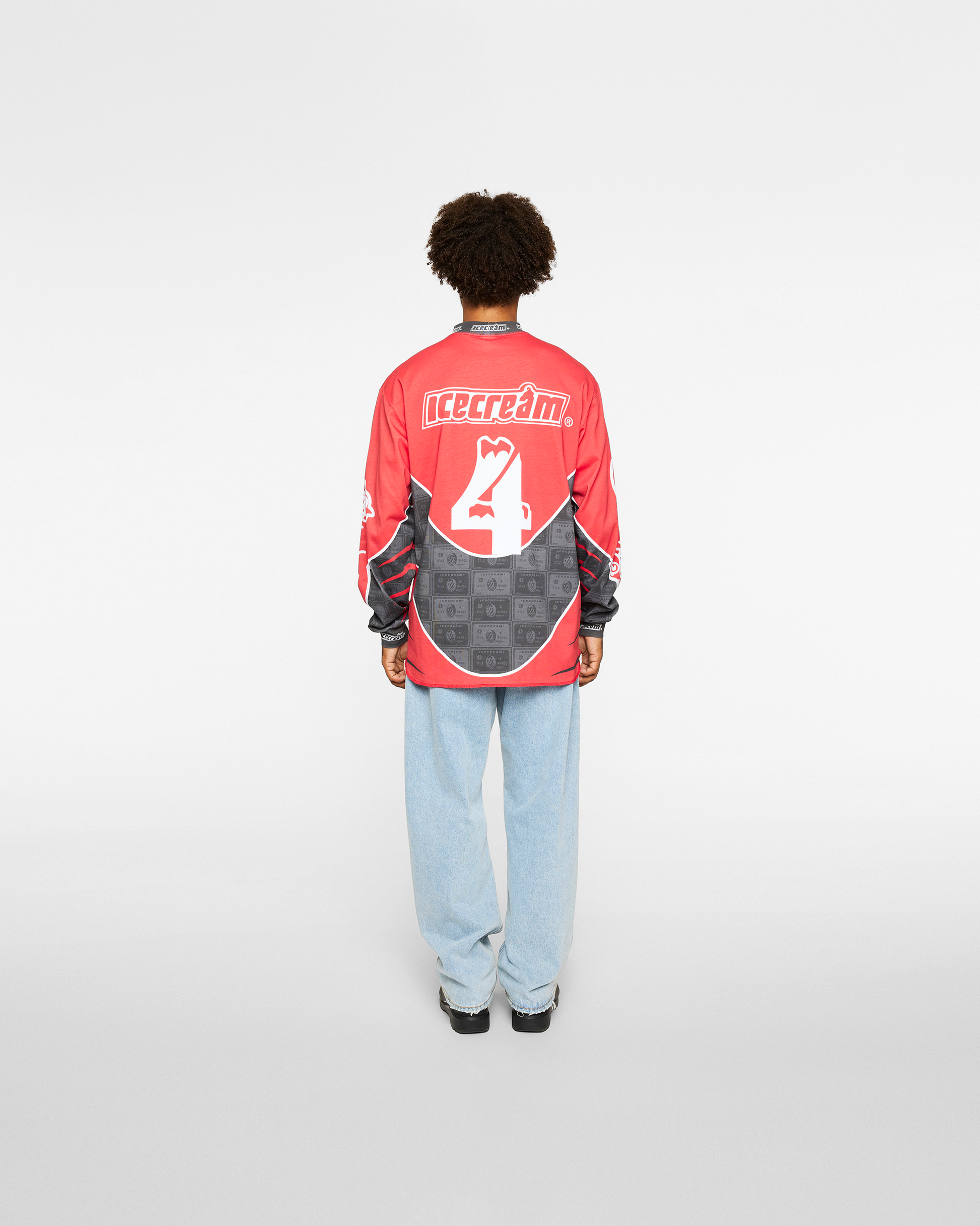 Jersey tee designed with an allover sublimated dollar print, contrast ICECREAM logos, and signature Running Dog graphic accents at the sleeves.
